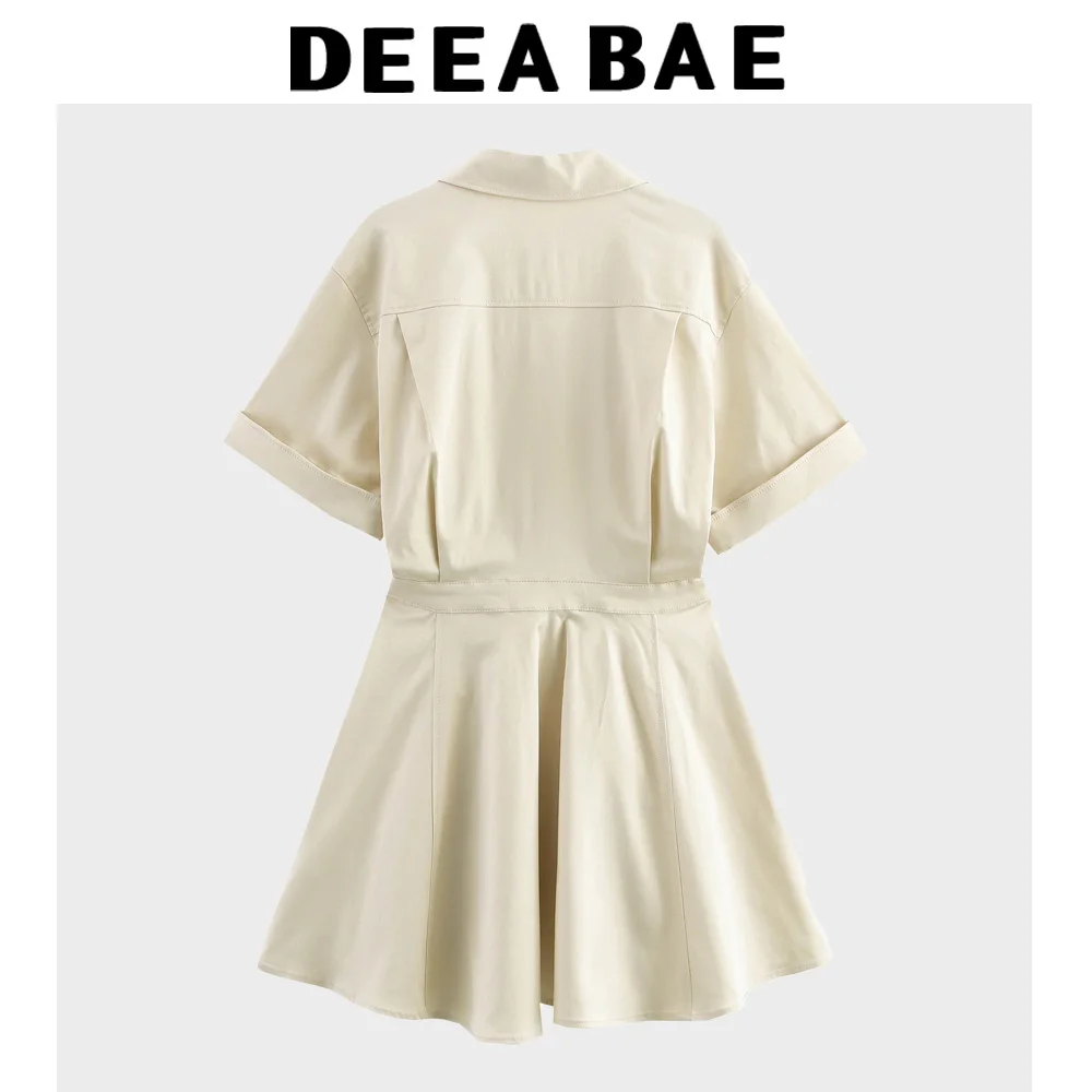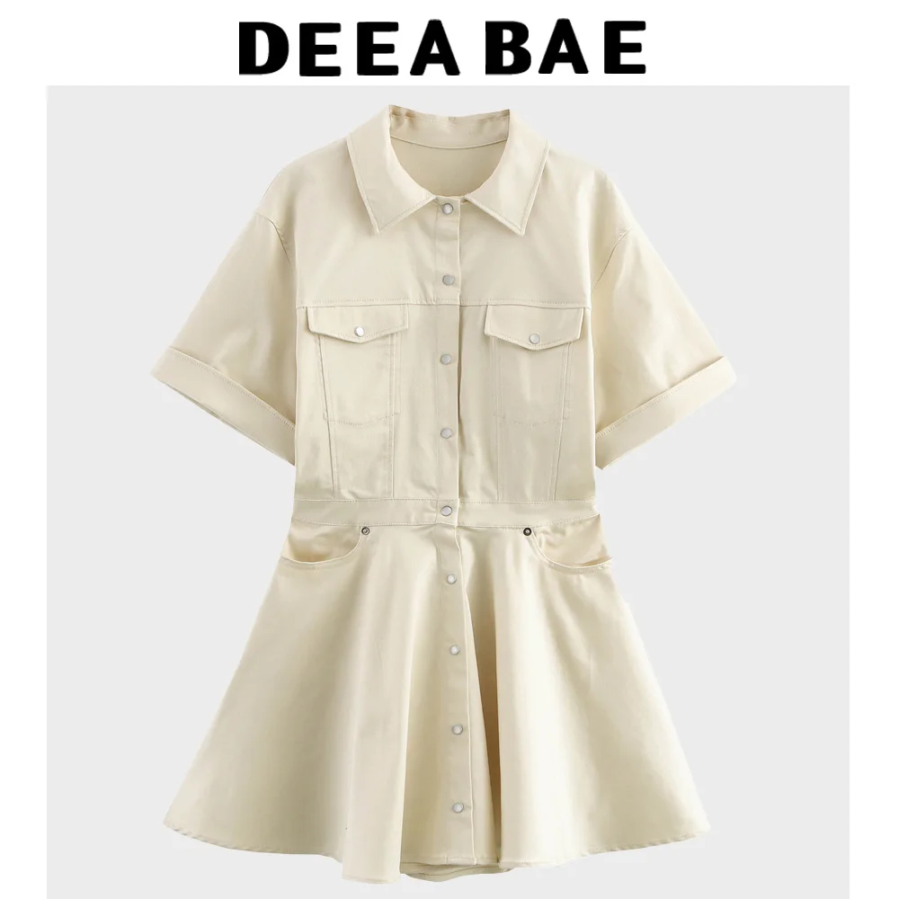 DEEABAE Women's Clothes Hot Girl Style Waist Pocket Decoration Lapel Wide Hem Short Dress French Slim Shirt Dress