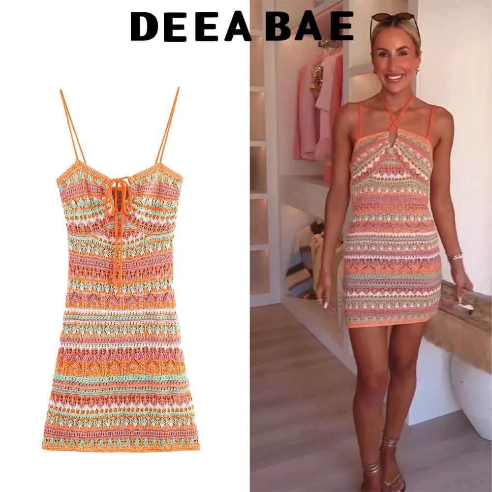 DEEABAE Women's clothing 2025 summer new European and American style fashion personality temperament knitted mini dress