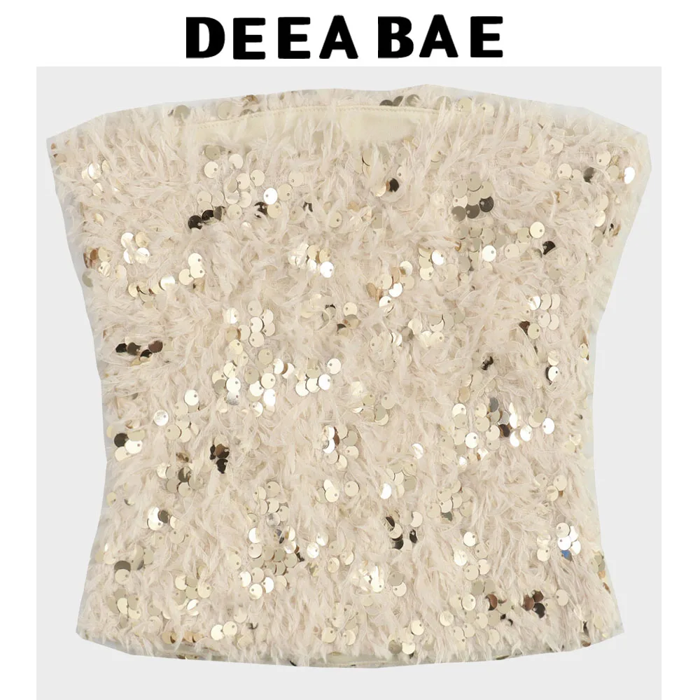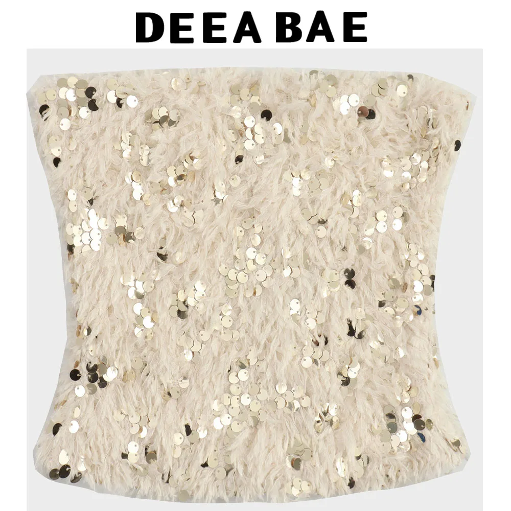 DEEABAE Women's Clothing New Sequin Decoration Sleeveless Slim Fit Short Style Strapless And Shoulder Exposed Bodies