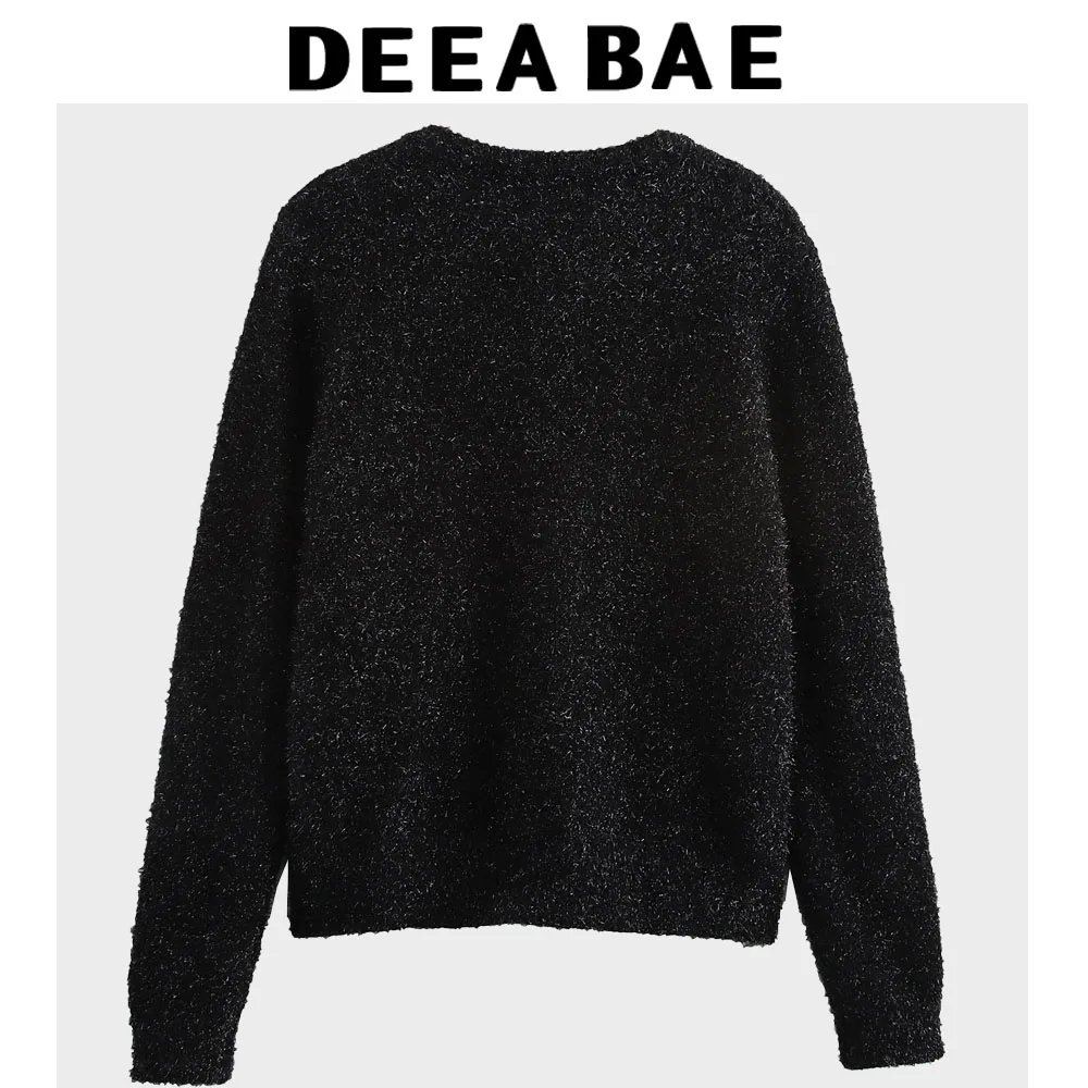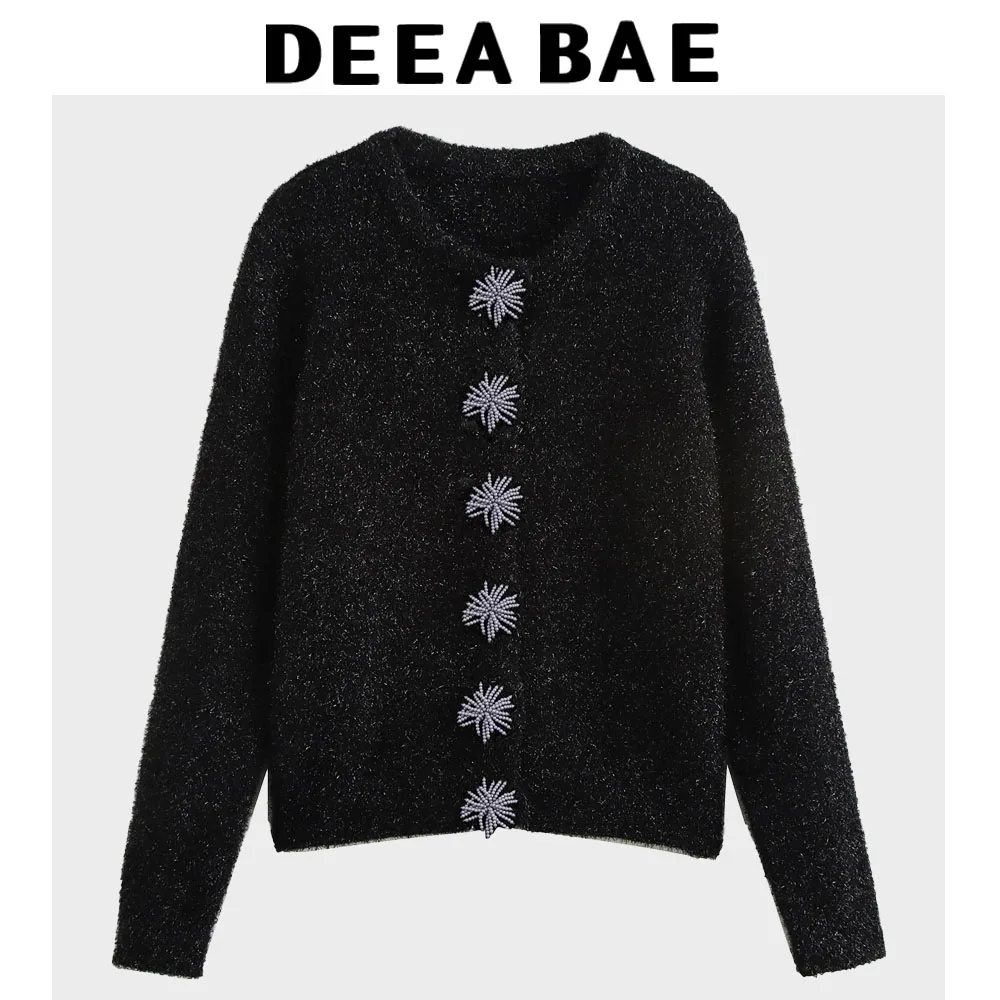 DEEABAE Women's Clothing With Sweet Knitwear Pearl Handmade Button Decoration Metal Wire Long Sleeved Cardigan Women's clothing
