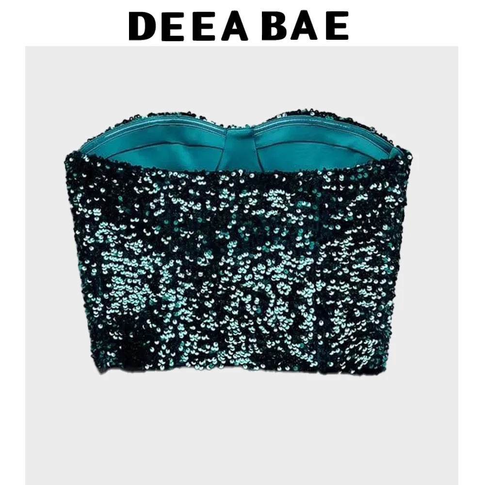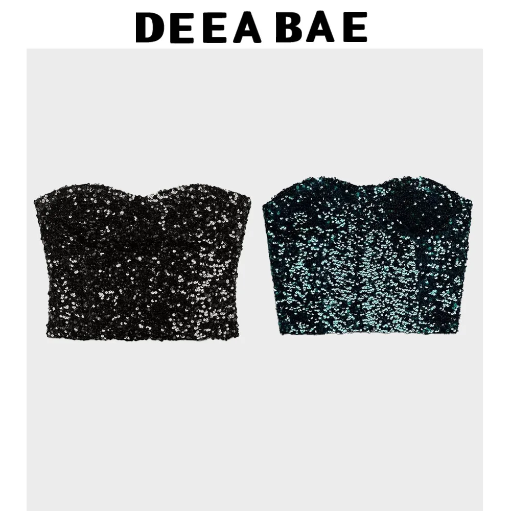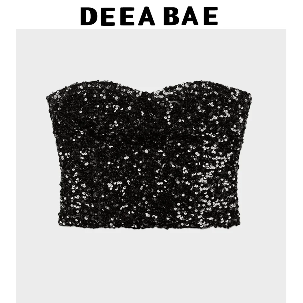 DEEABAE Women's Corset Western-style Backless Sequined One-line Chest-wrapped Short Top Temperament Tube Top Vest