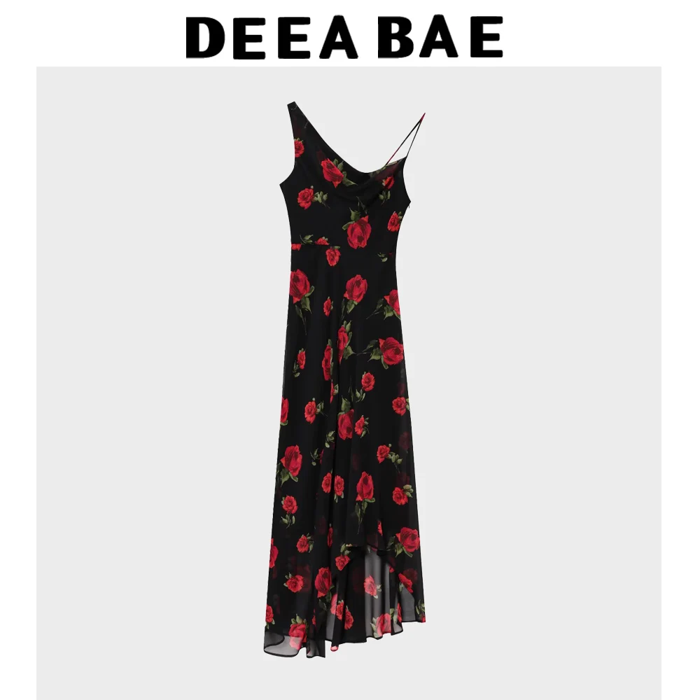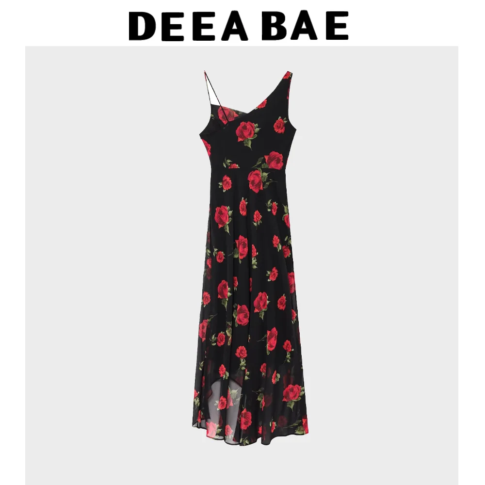 DEEABAE Women’s Dress 2025 Summer Outfit New Chiffon Long Floral Print Swing Collar Vacation Long Skirt