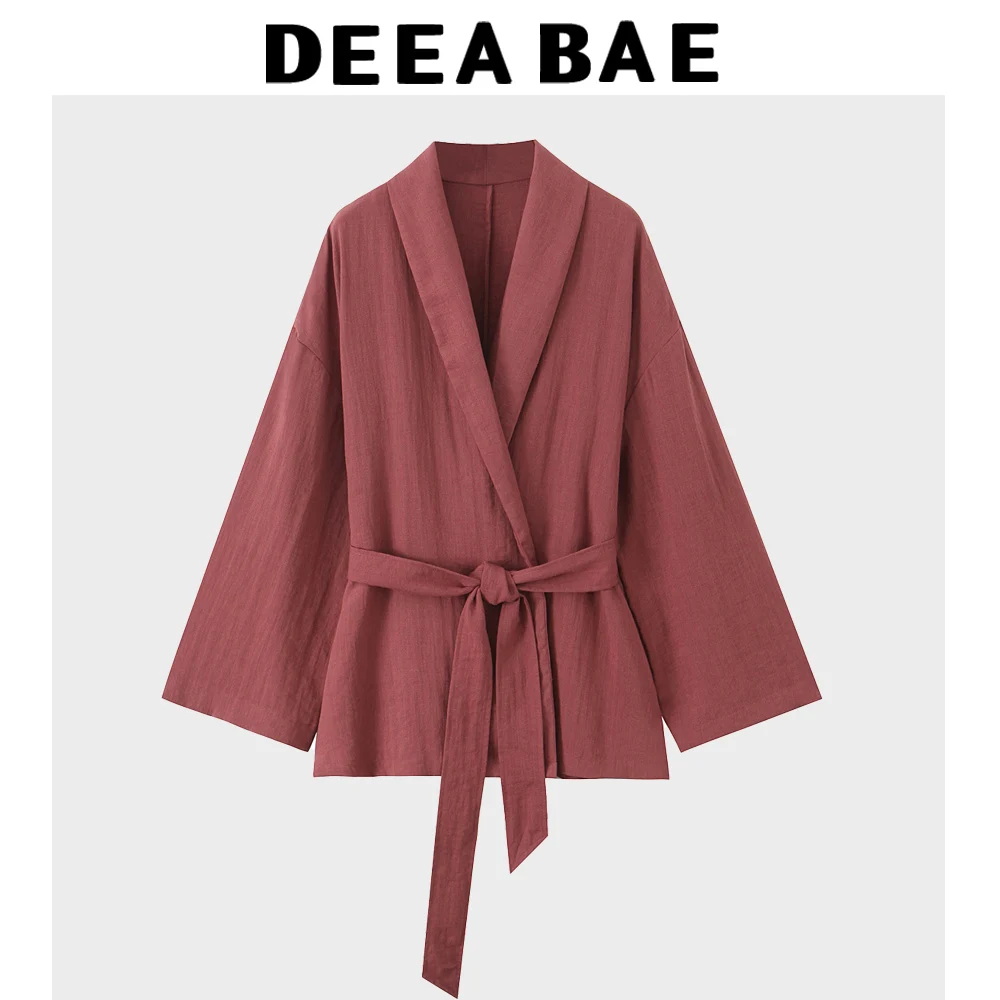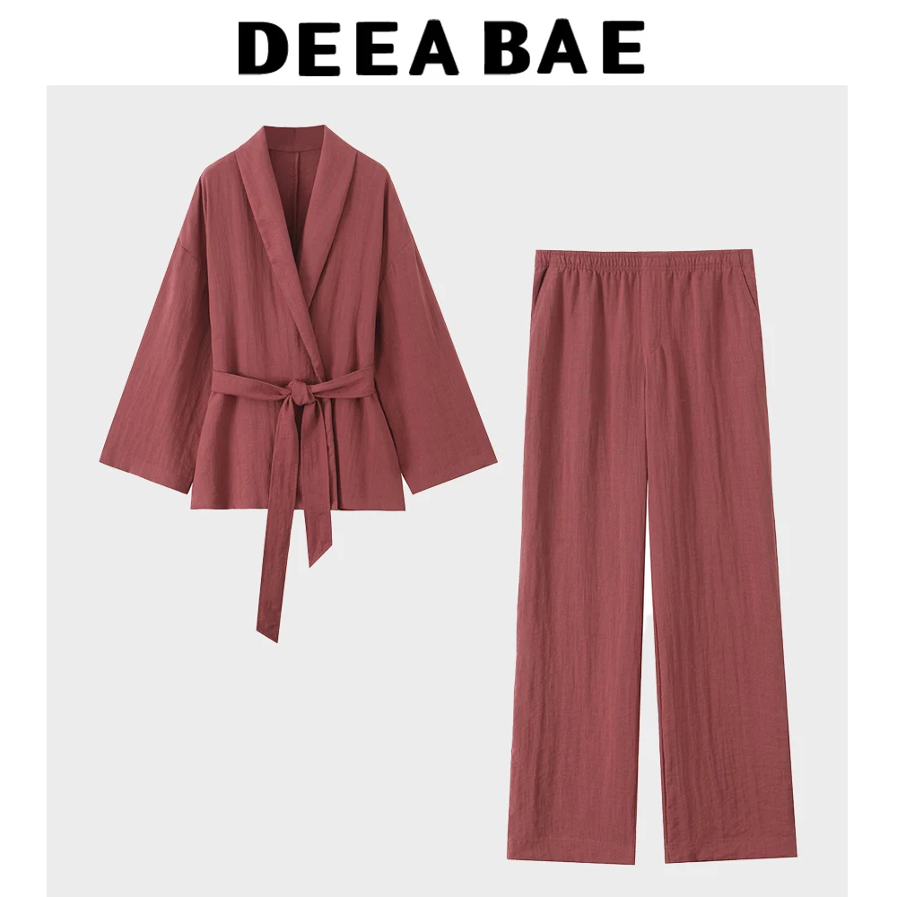 DEEABAE Women's Fashion Street Style Retro Texture Double Breasted Kimono Style Outerwear Pajama Style Pants