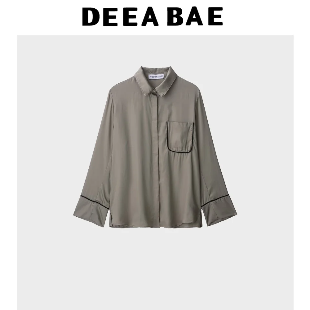 DEEABAE Women's Pajama Set 2025 Summer New Shirt Style Color Contrasting Rolling Edge Satin Pajama Set