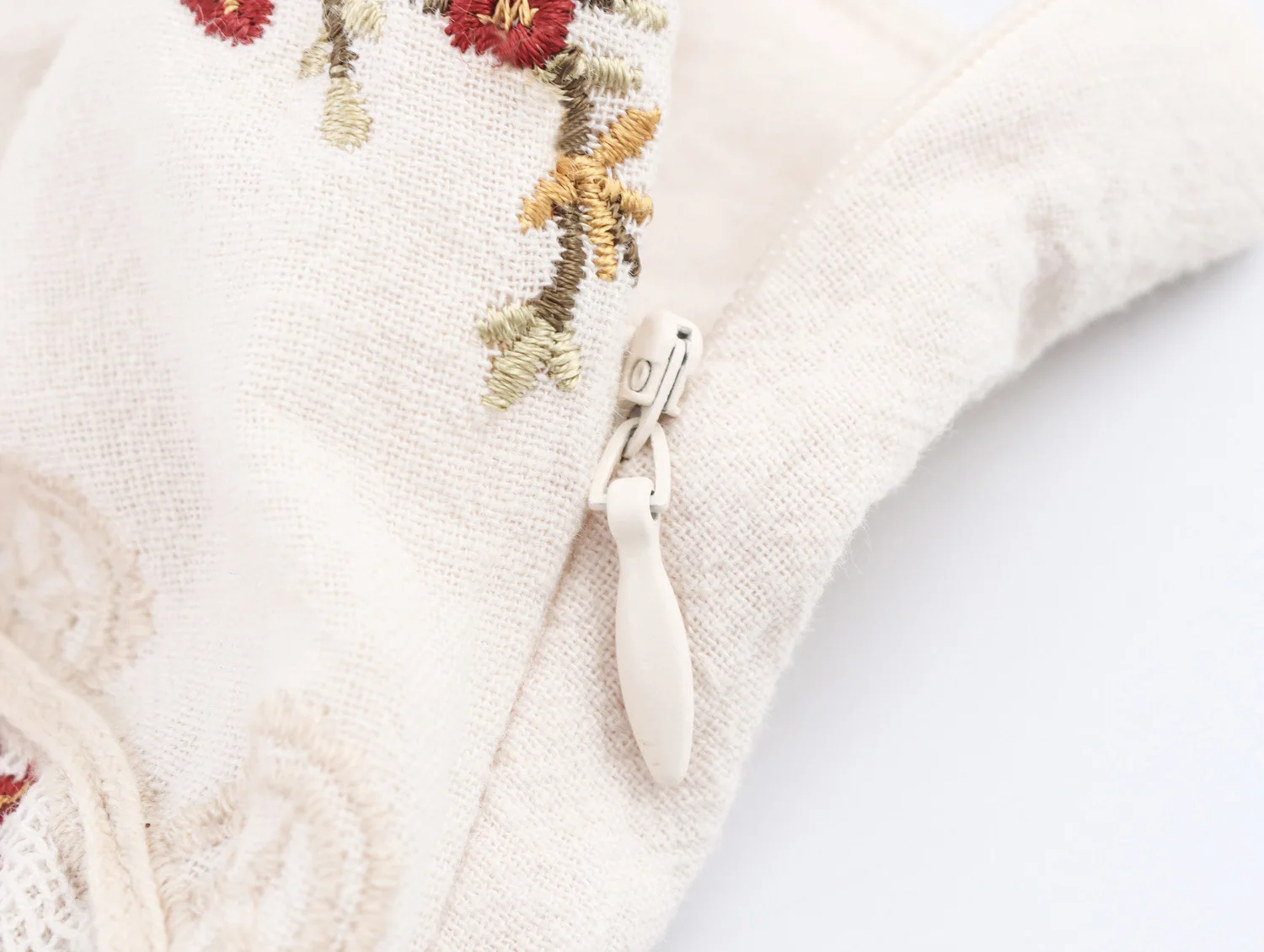 DEEABAE Women’s Summer New Fashion Style Waist Collection Cotton Embroidered Strap Short Dress