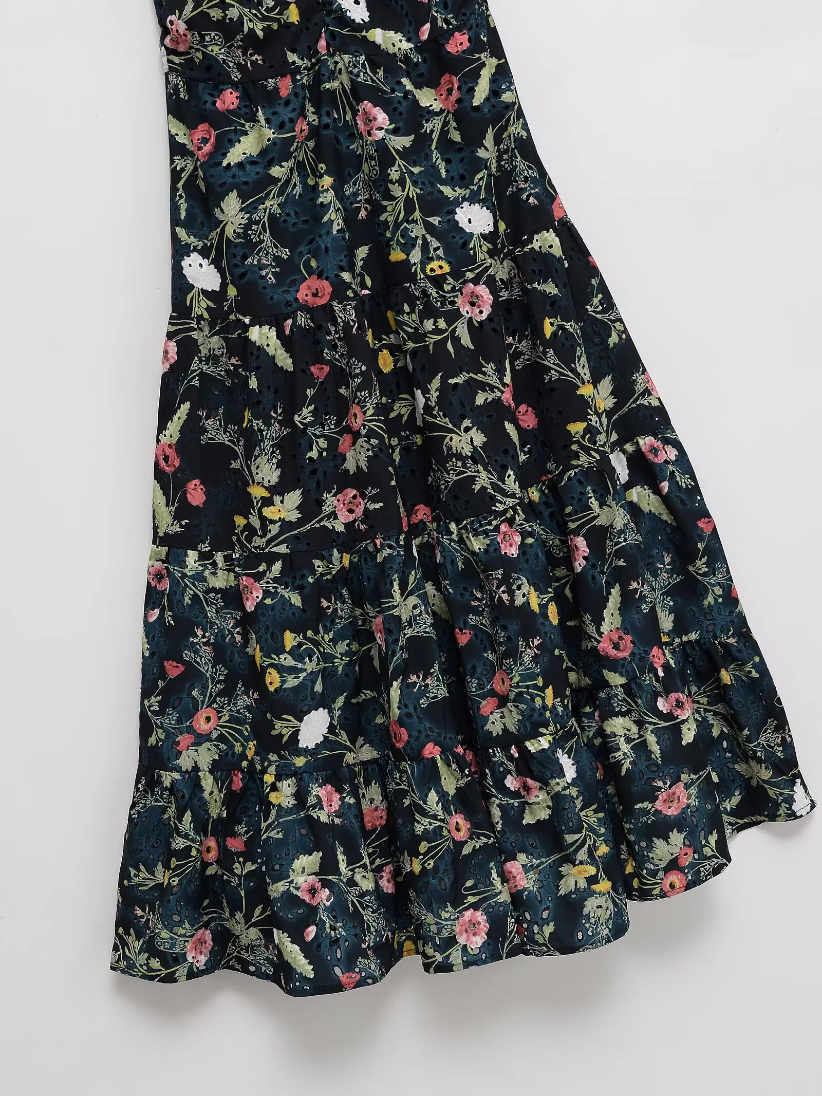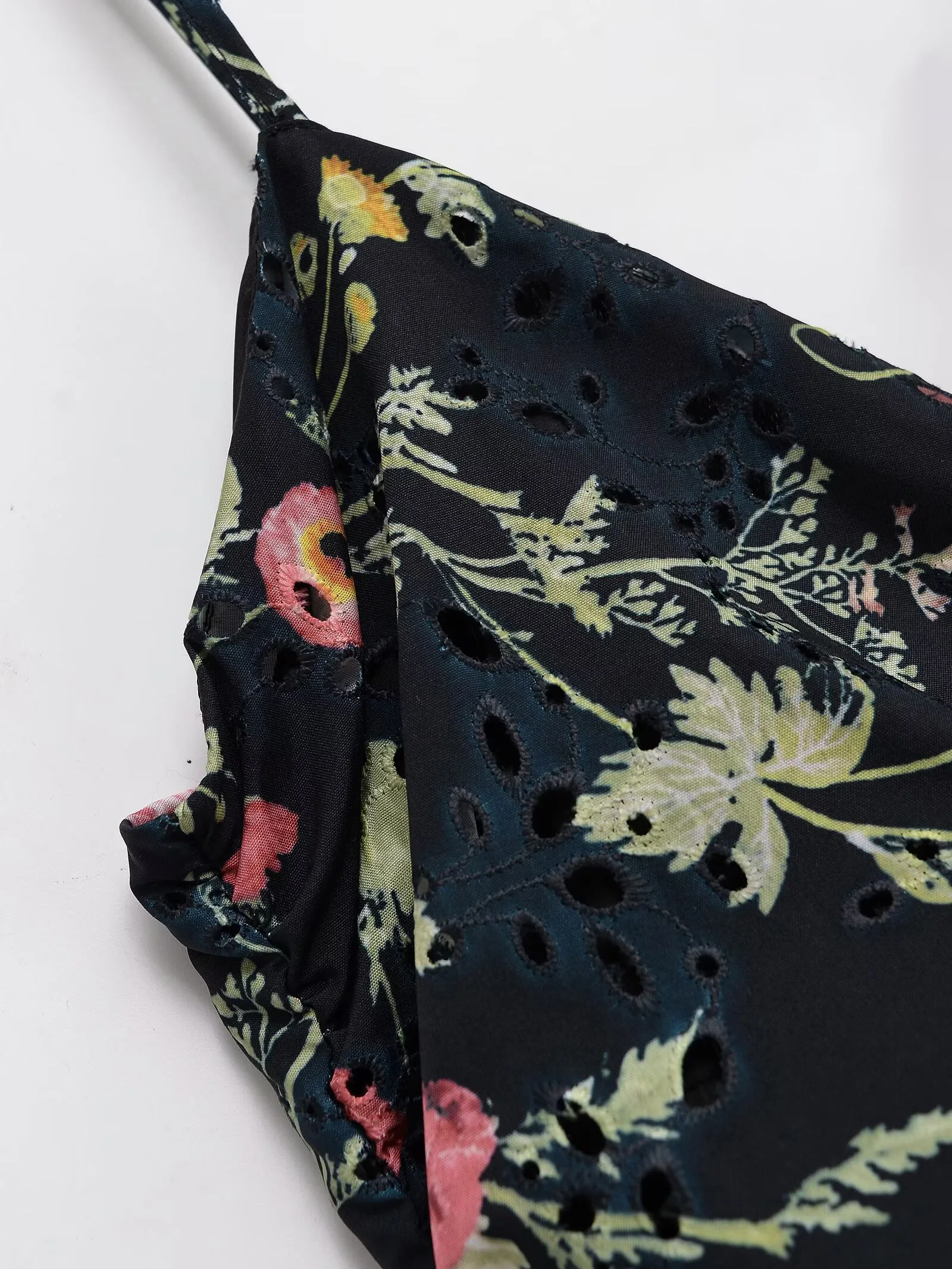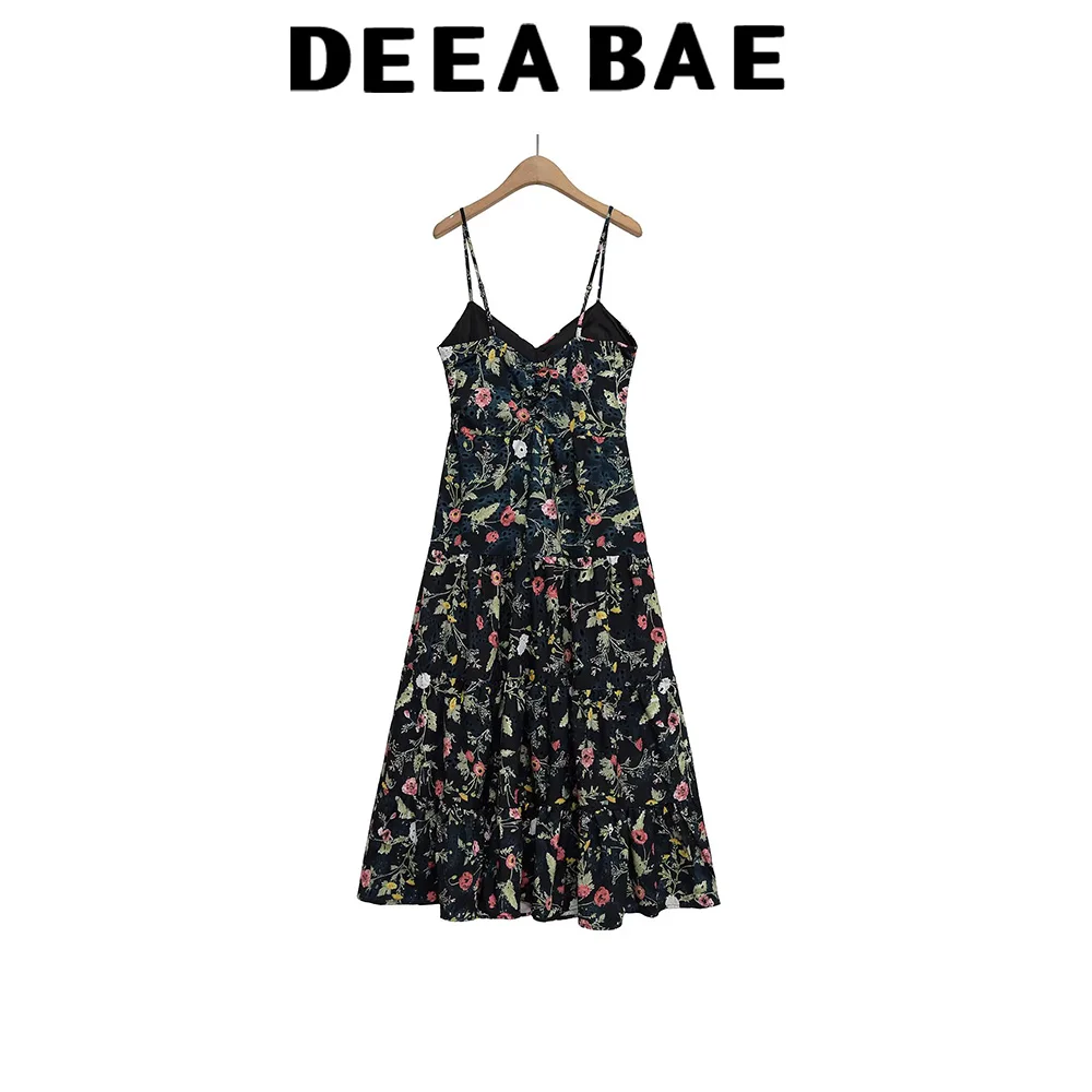DEEABAE Women’s Summer New Fashionable Temperament Cotton Hollow Embroidery Printed Suspender MIDI Dress