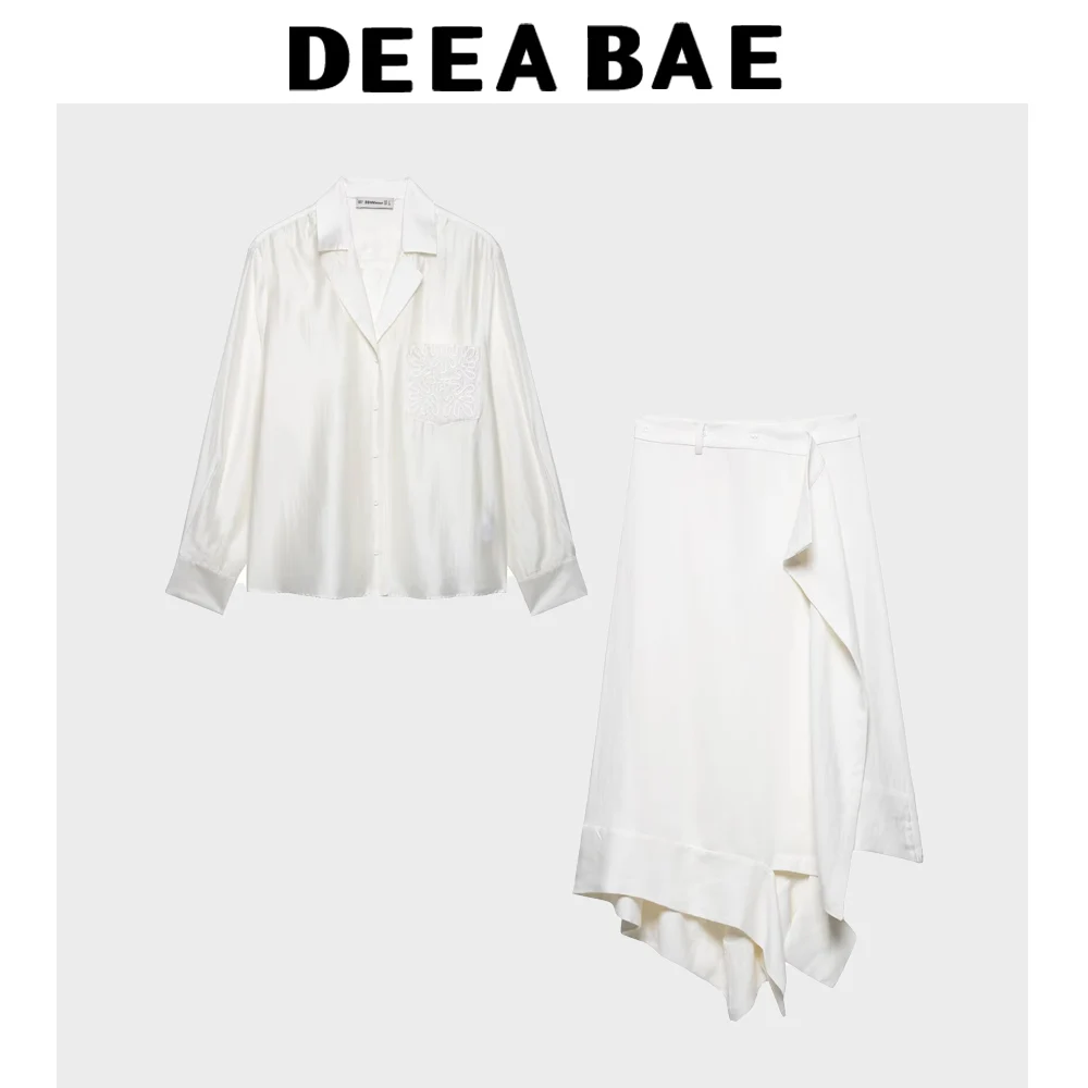 DEEABAE Women's Summer New Style Embroidered Pocket Collar Shirt Asymmetric Design Half Skirt Set