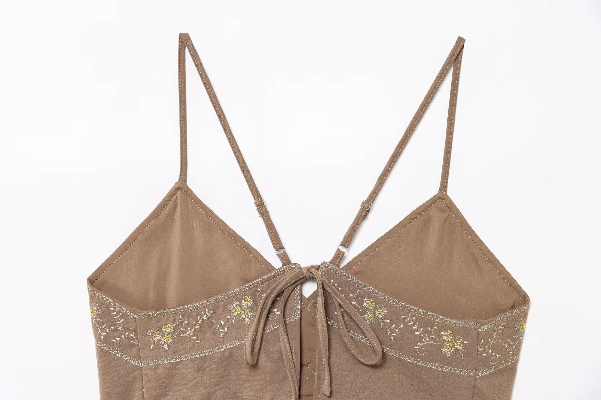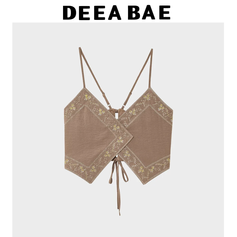 DEEABAE Women’s Summer New Style French Retro Heavy Embroidery Design Temperament And Sexy Slim Fit Tank Top