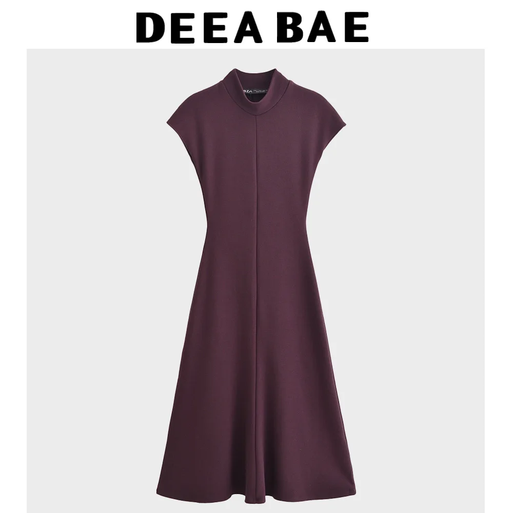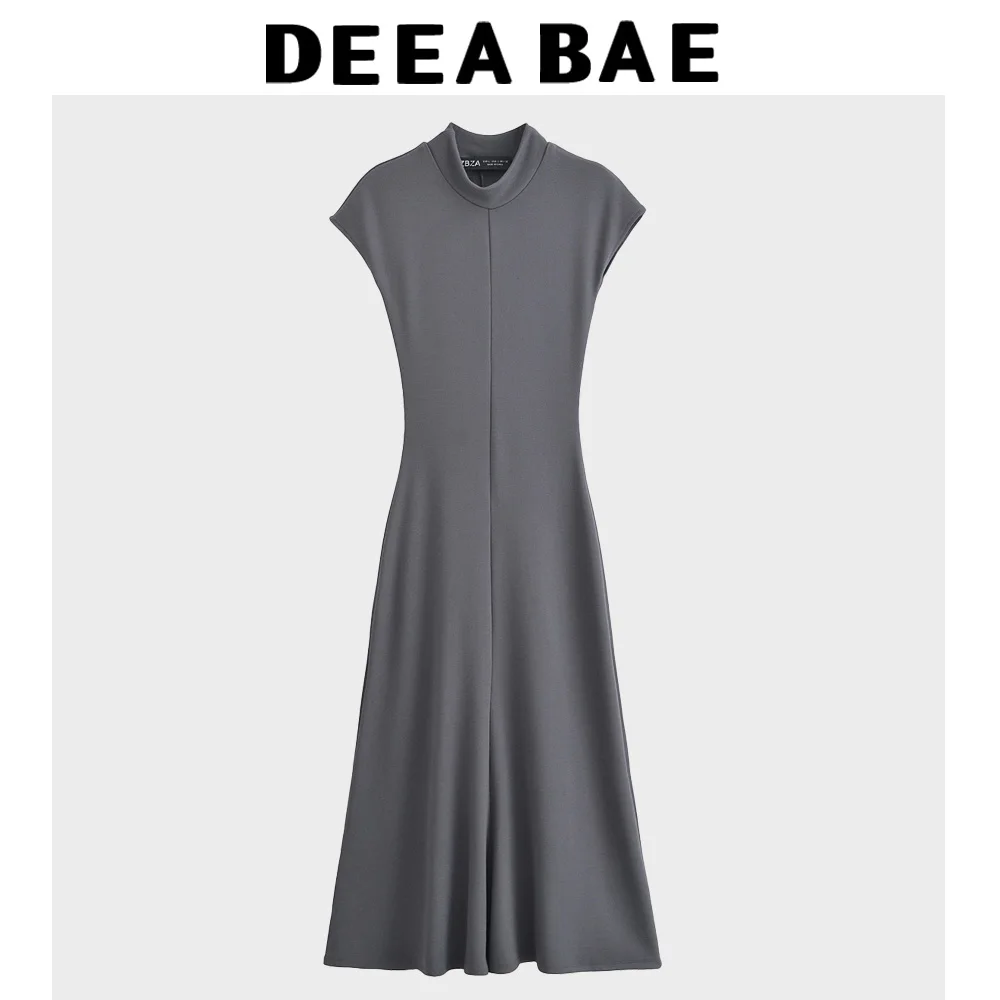 DEEABAE World Brands Dresses 2025 Fashion Slim Fit Half Turtleneck Dress Versatile Mid-length Vest A-line Skirt