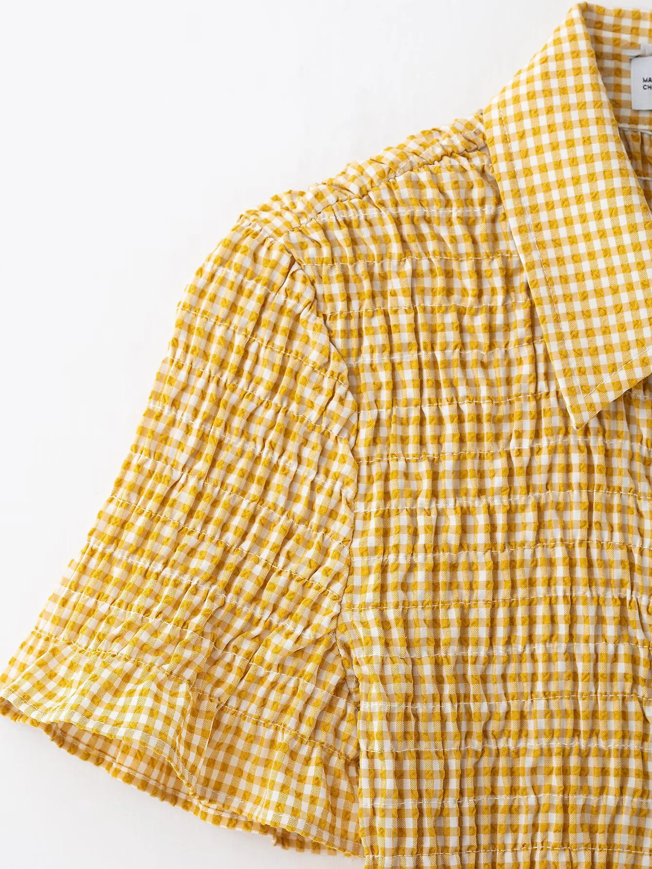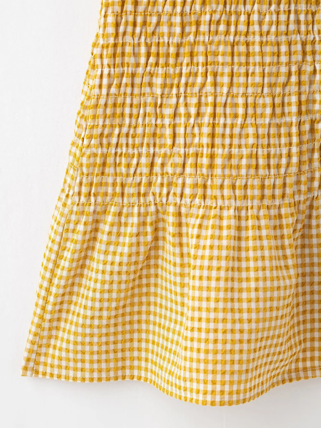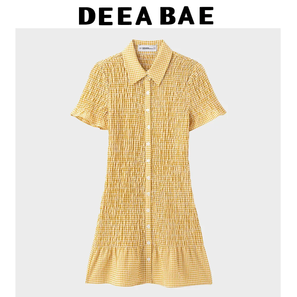 DEEABAE World Brands Dresses 2025 New Yellow French Ruffle Plaid Slim Shirt Dress Dress Slim Pleated Decoration Short Dress