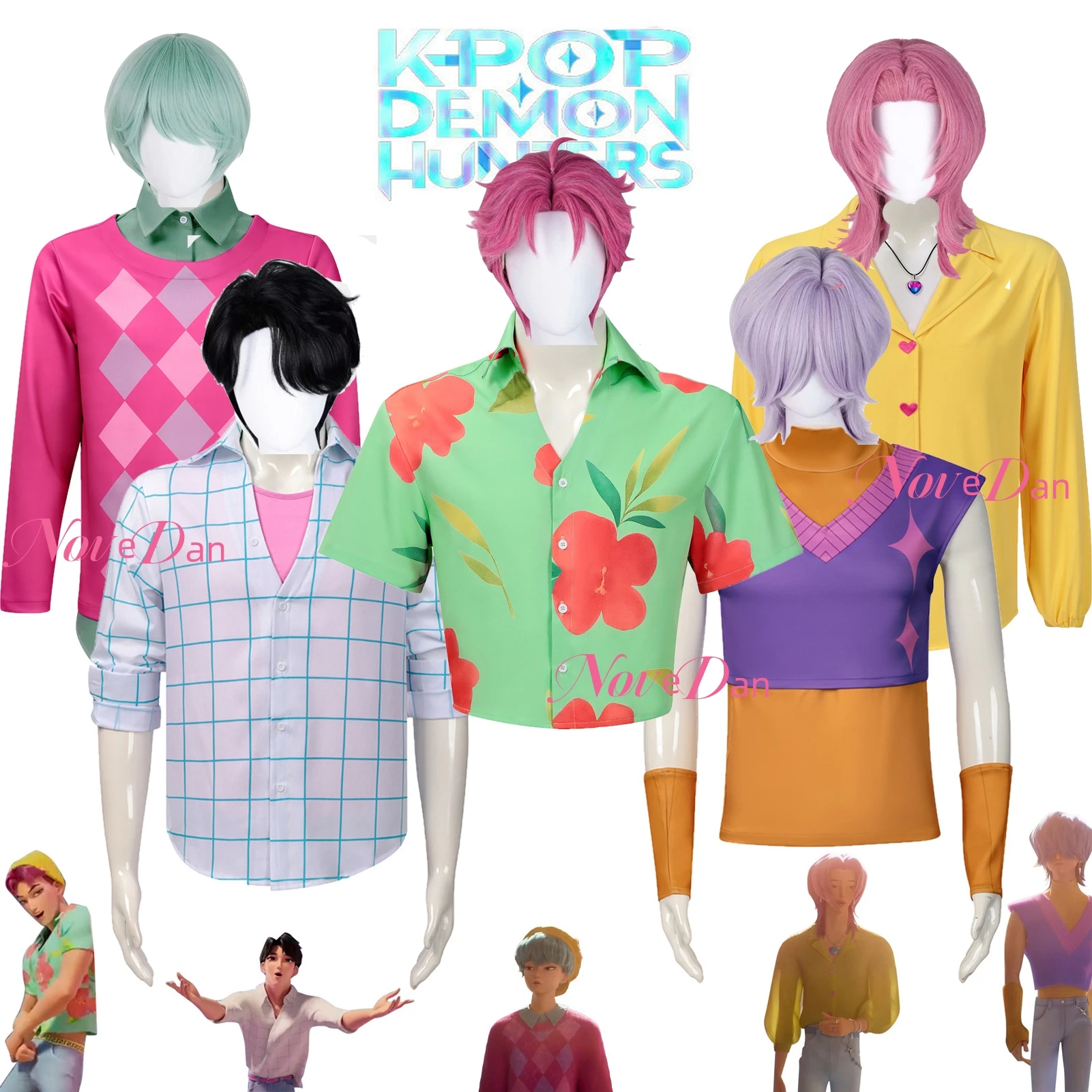 | Demon Hunters K Pop Cosplay Saja Boys | Demon Hunters KPop Cosplay Mira Wig Dress Uniform Outfit Suit |