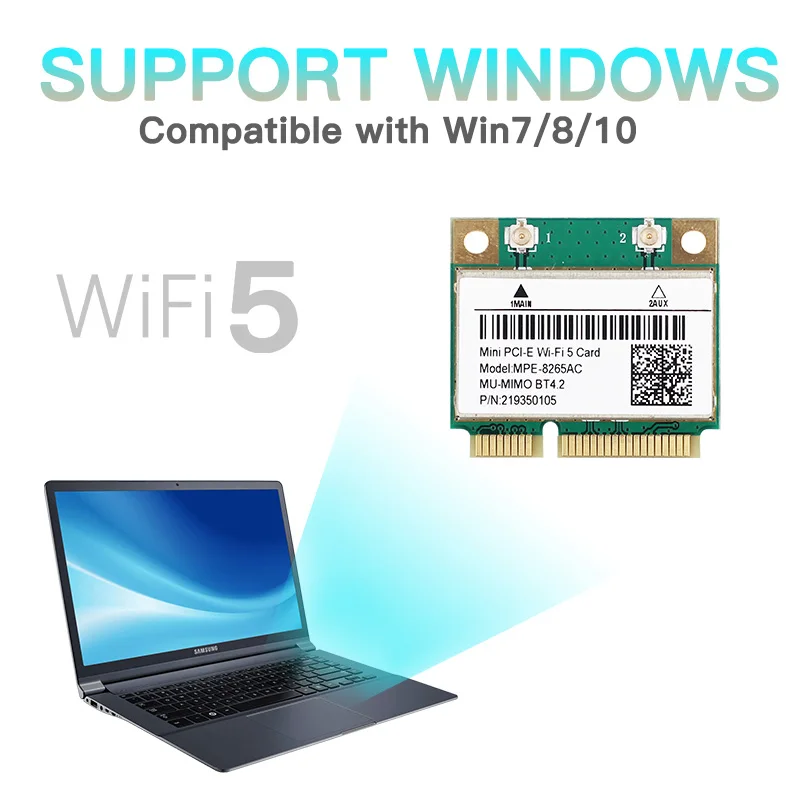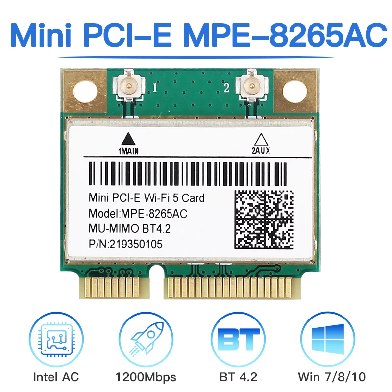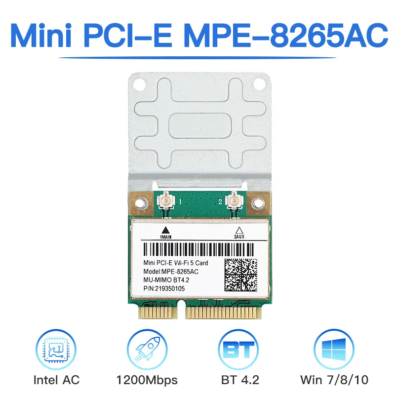 Dual Band 2.4G/5Ghz 8265AC Wireless MINI PCI-E WIFI Card For Bluetooth 4.2 1200Mbps MC-AC7265 Windows 7/8/10 802.11AC For Laptop