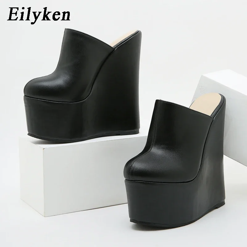 Eilyken 2025 New Arrival Platform Wedge Round Head Pumps Slippers Summer Woman Sexy Super High Sandal Shoes Black 35-42
