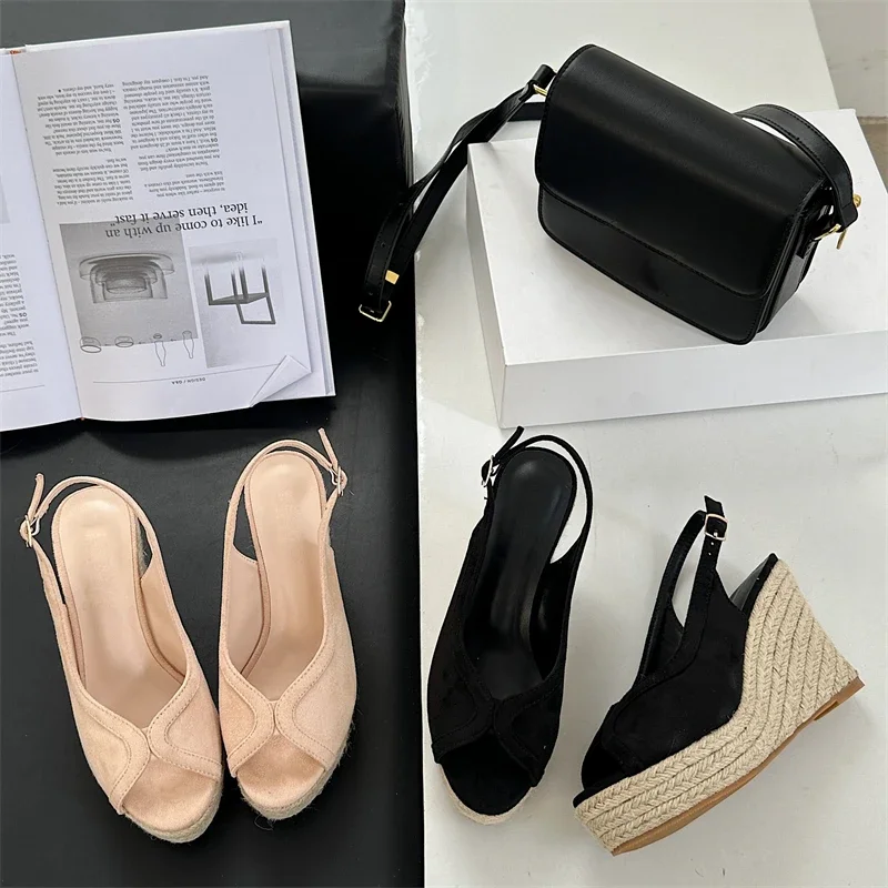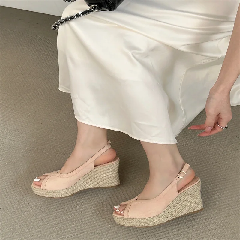 Eilyken 2025 New Summer Rattan Weave Peep Toe Women Sandals Fashion Buckle Strap Platform Wedges Heels Shoes