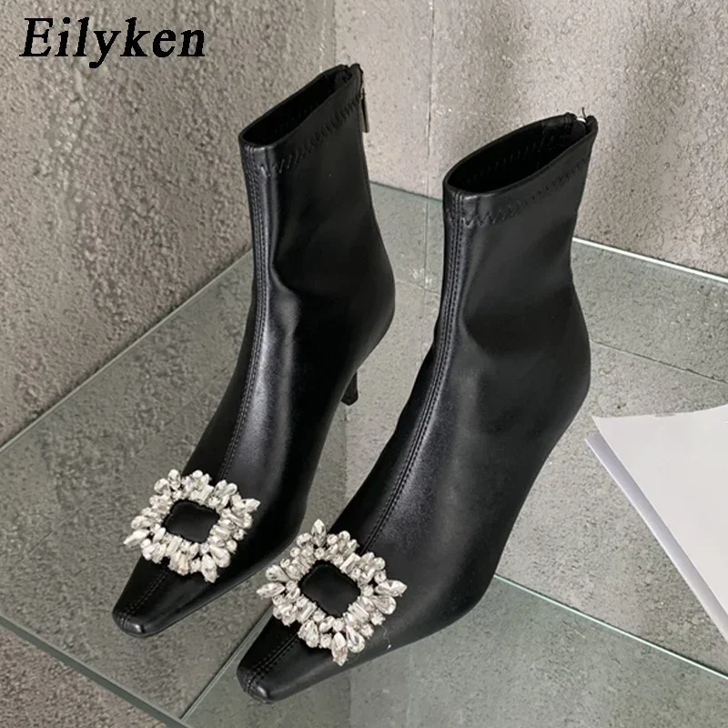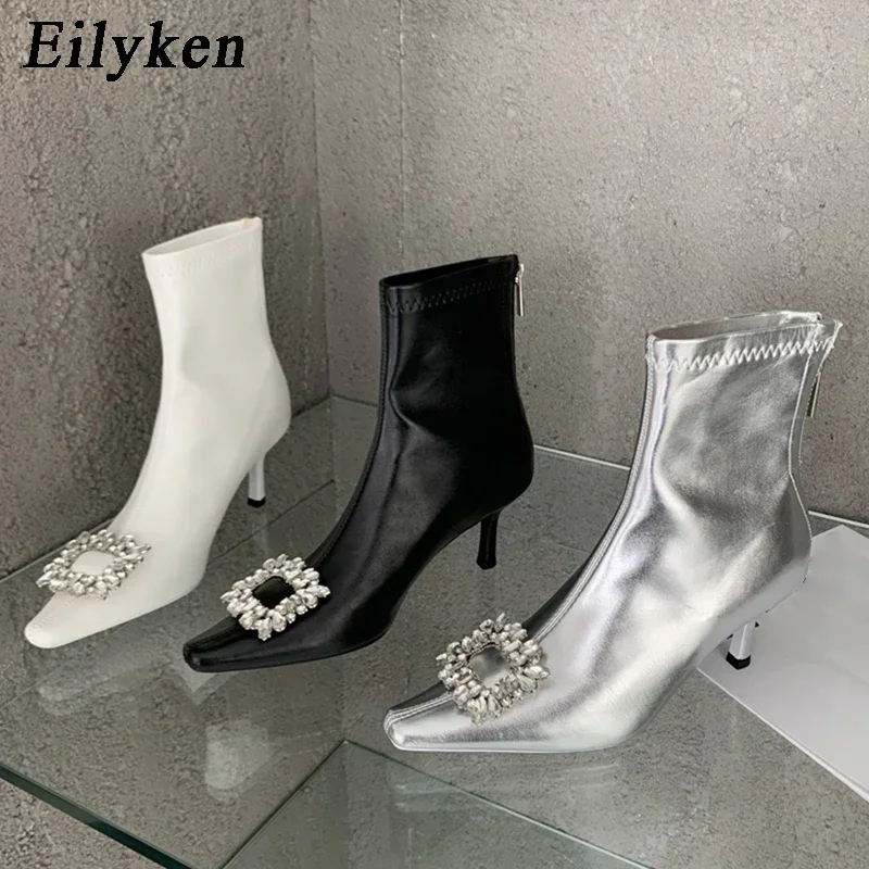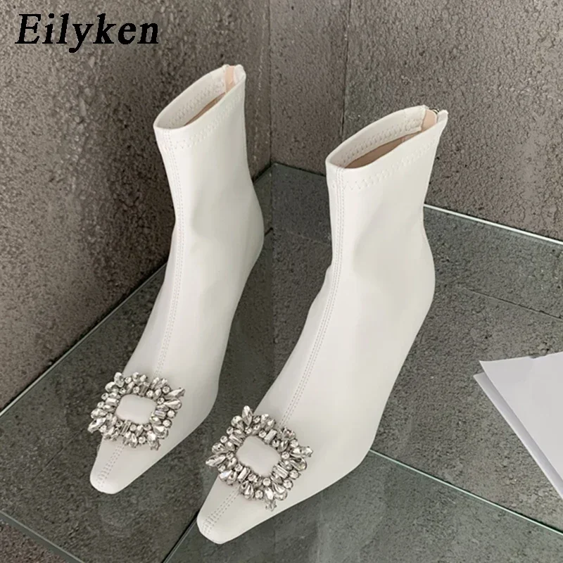 Eilyken 2025 Street Style CRYSTAL Buckle Pointed Toe Women Ankle Boots Zipper Low Heels Party Prom Female Shoes