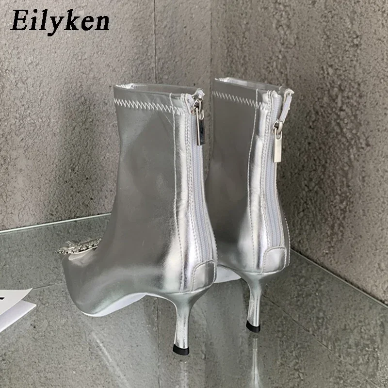 Eilyken Street Style Thin High Heels Ankle Boots Women Patent Leather Autumn Winter Zipper Shoes Se...
