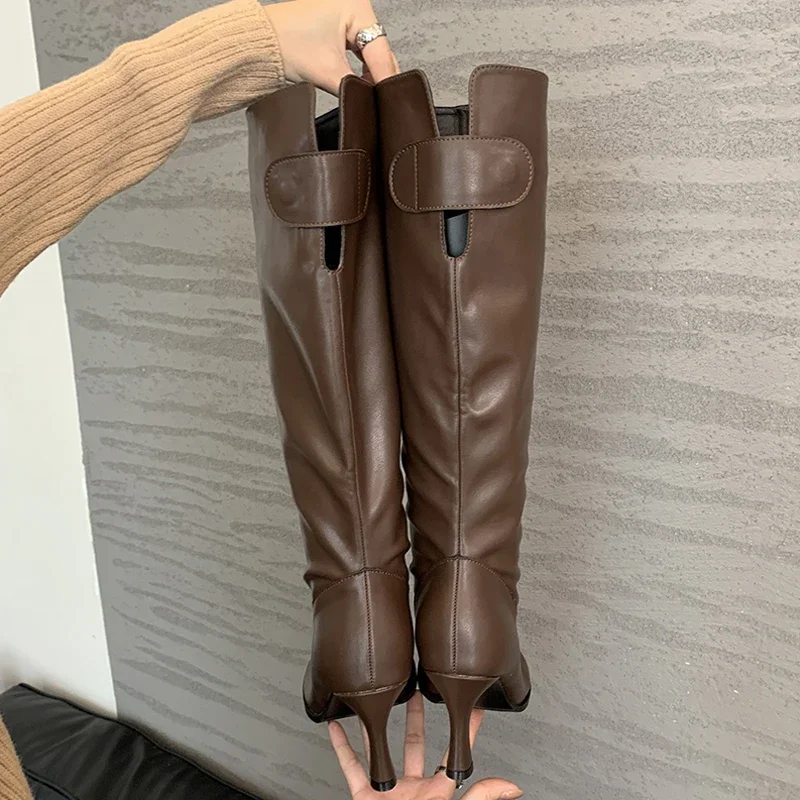 Eilyken Autumn Winter Cosy Button Woman Knee-High Modern Boots Fashion Round Toe Thin Heels Ladies Long Booties Party Shoes