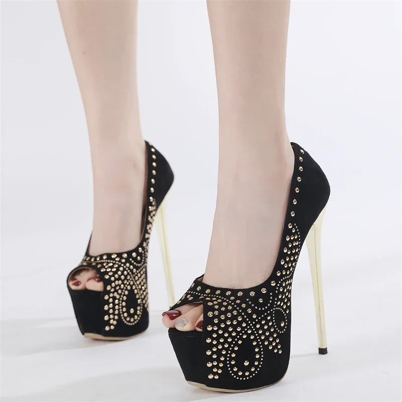 Eilyken Design Crystal Peep Toe Buckle Strap Women Pumps Fashion Platform Super Thin Heels Nightclub Party Shoes