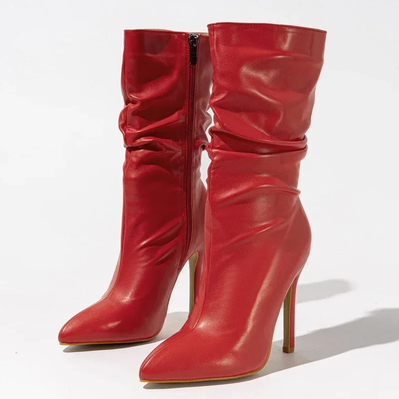 Eilyken Design Sexy Pleated Pointed Toe Zipper Women Ankle Boots Fashion Thin High Heels Stripper Modern Booties Shoes