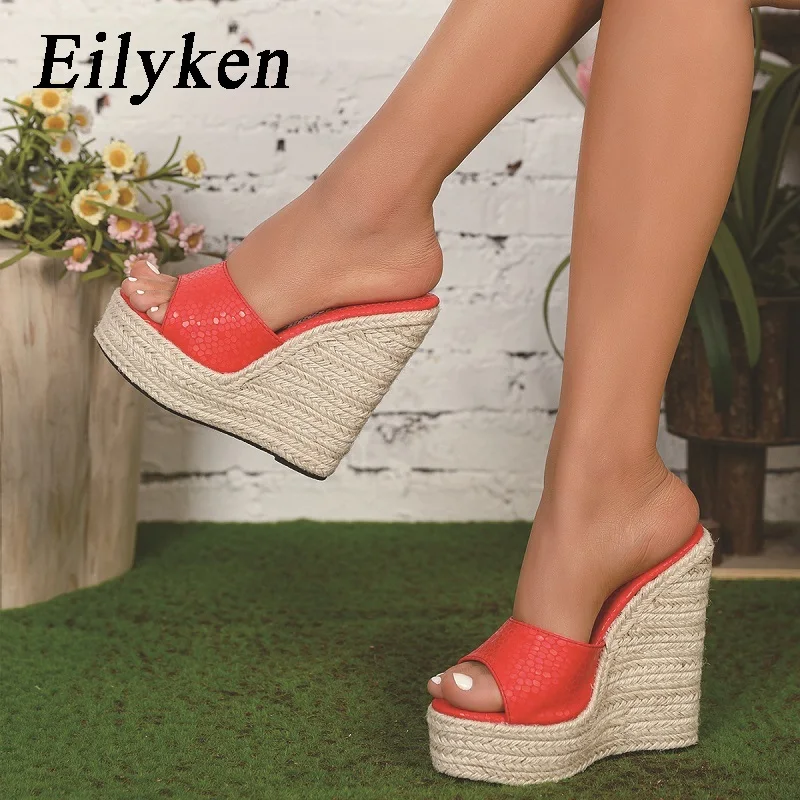 Eilyken Extreme Solid Platform Peep Toe Women Slippers Summer Concise Wedges High Heels Outdoors Slide Shoes