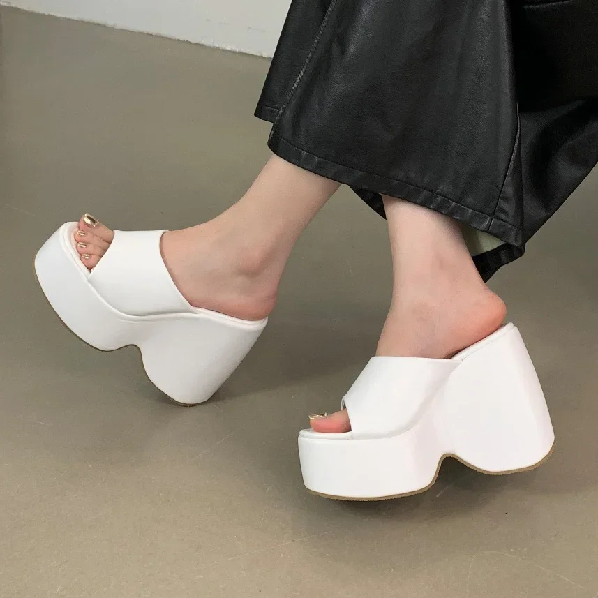 Eilyken Fashion Open Round Toe Platform Wedges Women’s Slippers Concise Thick Bottom High Heels Slide Ladies Shoes