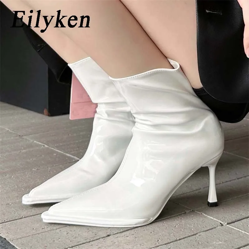 Eilyken Fashion Soft Leather Low Heel Zippers Women Ankle Boots Pointed Toe Spring Autumn Outdoor Short Ladies Shoes