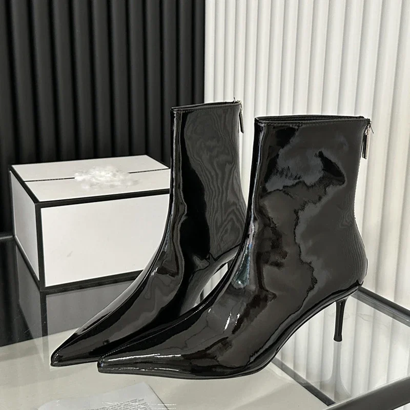 Eilyken Street Style Thin High Heels Ankle Boots Women Patent Leather Autumn Winter Zipper Shoes Se...