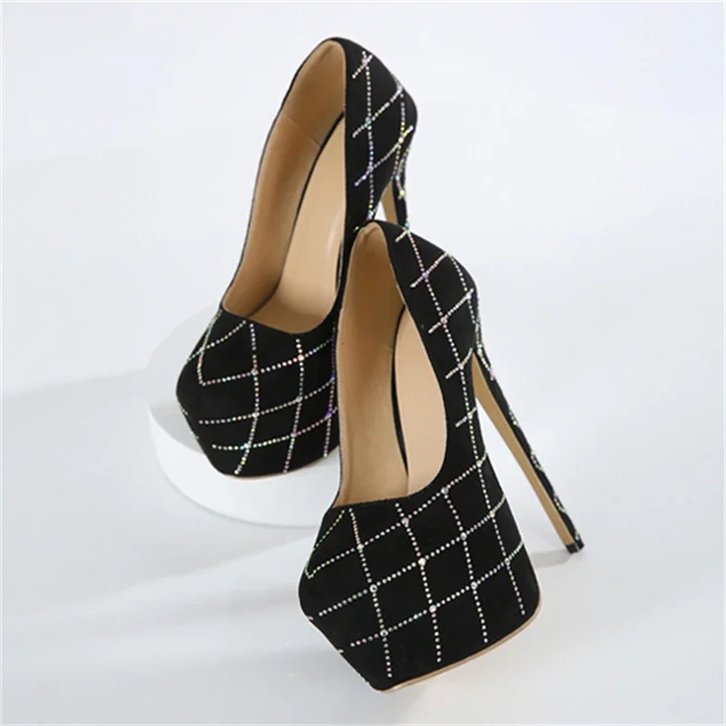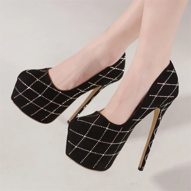 Eilyken Sexy Crystal Diamond Round Toe Woman Pumps Fashion Platform Super Stiletto Heels Nightclub Strippers Femme Shoes
