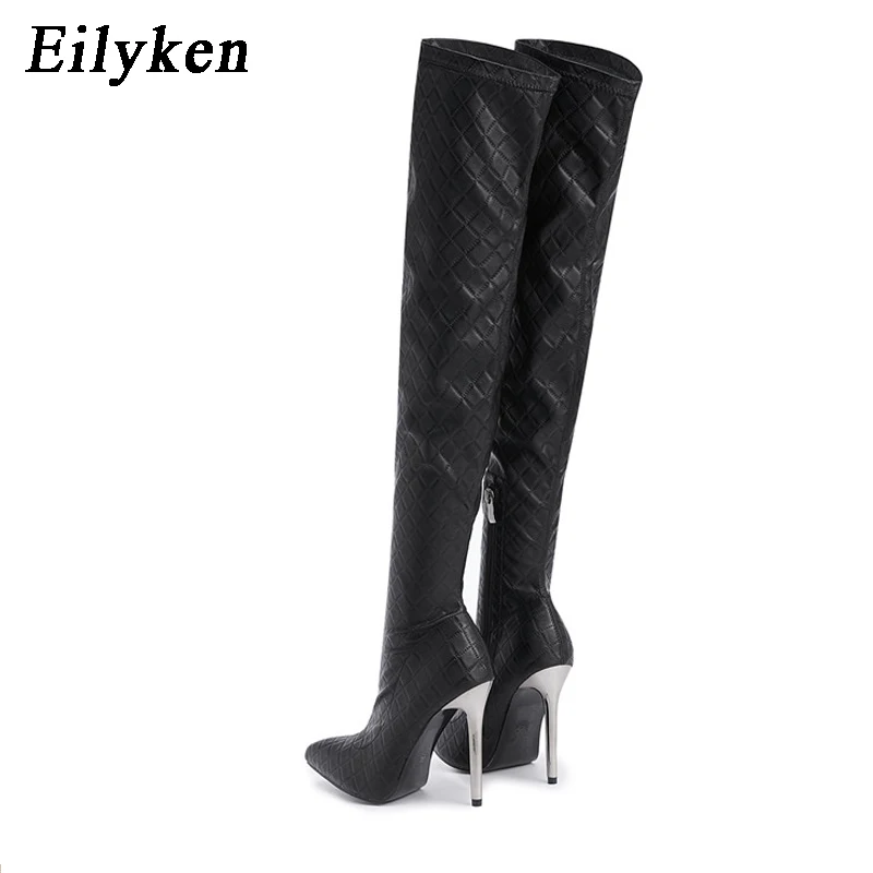 Eilyken Sexy Nightclub Party Stripper Over The Knee Boots Women Stiletto Heels Fashion Pointed Toe Zip Thigh High Female Shoes