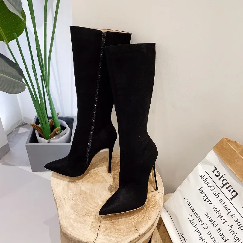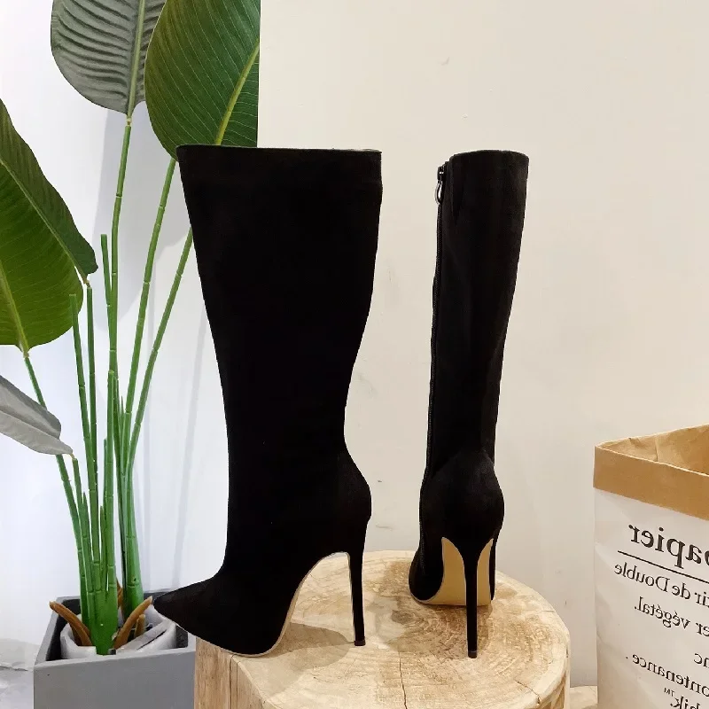 EilyKen Street Style Pointed Toe Women Knee High Boots Sexy Thin High Heels Shoes Autumn Winter Nightclub Prom Pumps