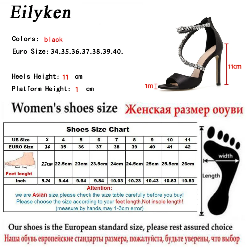 Eilyken Summer Fashion High Heel 11CM Women Sandals Rhinestone Crystal Heel Ladies Shoes Zipper Design Party Open-toed Sandals