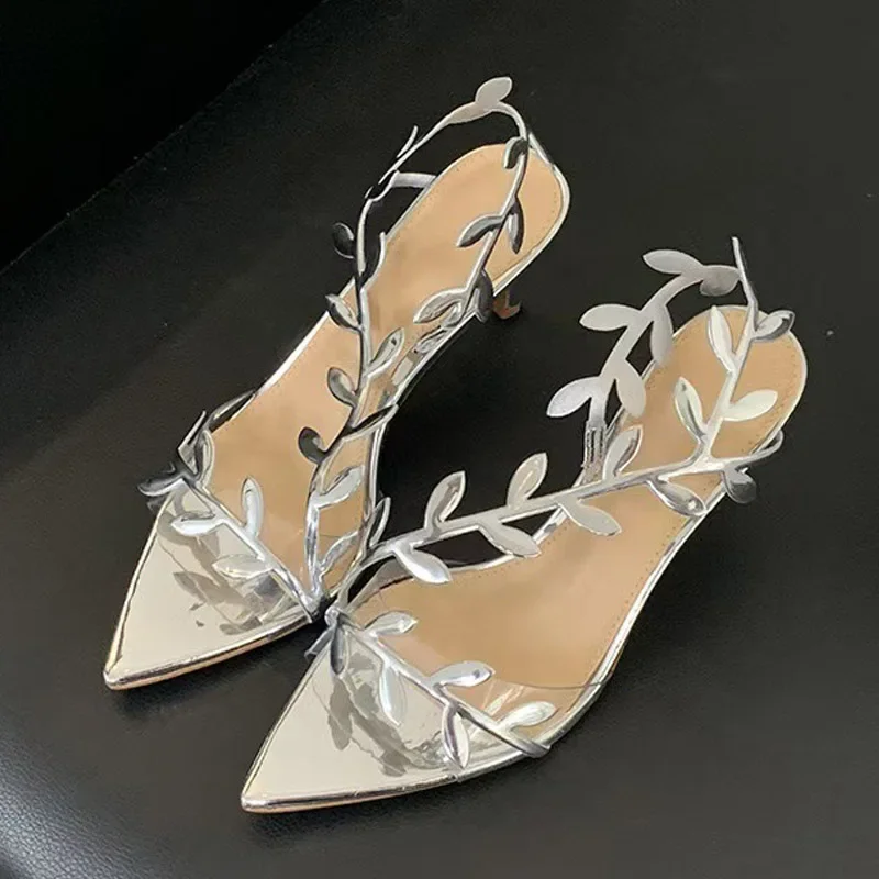 Eilyken Summer Golden Open Toe PVC Transparent Women Sandals Street Style Party Wedding Thin Heels Shoes Fashion Pumps