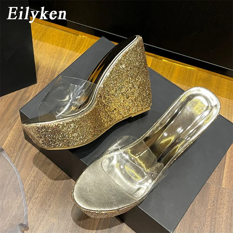 Eilyken Summer Golden Silver Platform Wedges Slippers Women Street Style PVC Transparent Jelly Shoes High Heels Sandals