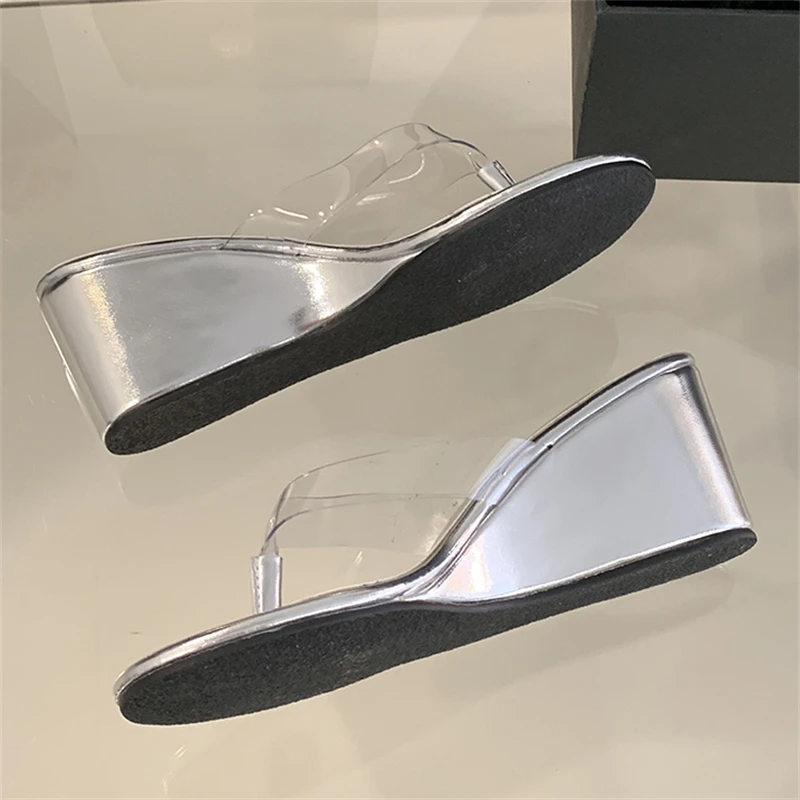 Eilyken Summer PVC Transpare Design Wedges Heels Women Slippers Party Flip Flop Slides Concise Shoes Zapatos De Mujer