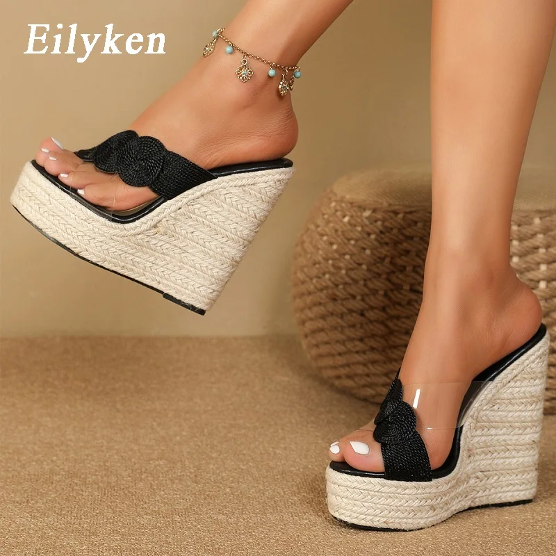 Eilyken Summer Street Style Cane Weave Platform Wedges Slippers Sandals Women Fashion High Heels Female Shoes Zapatos Mujer