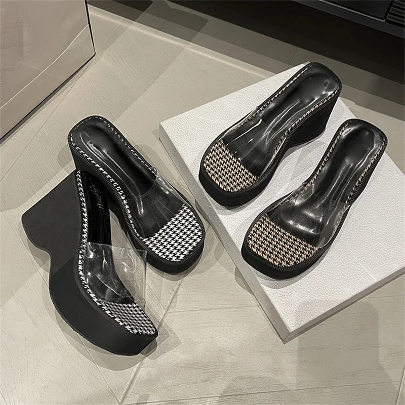 Eilyken Summer Street Style Platform Wedges Women Slippers Fashion PVC Transparentm Heels Shoes Zapatos De Mujer