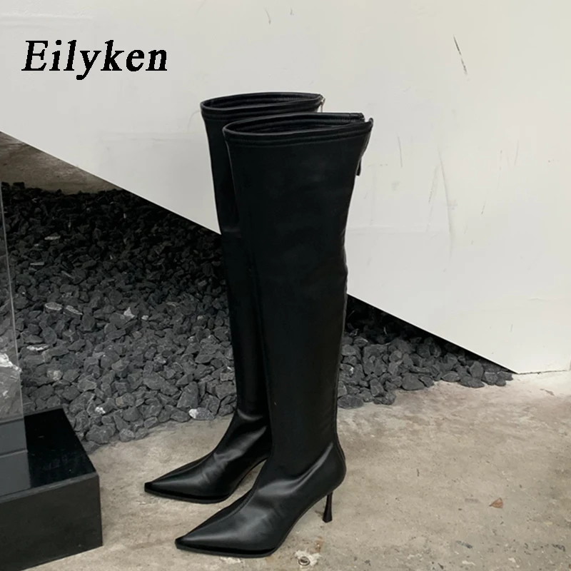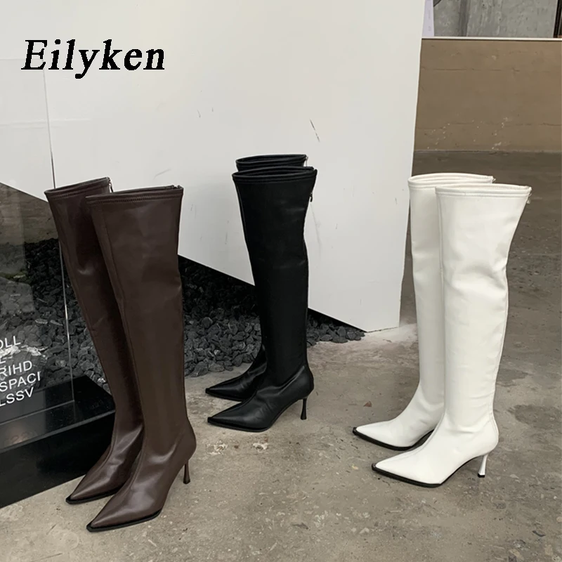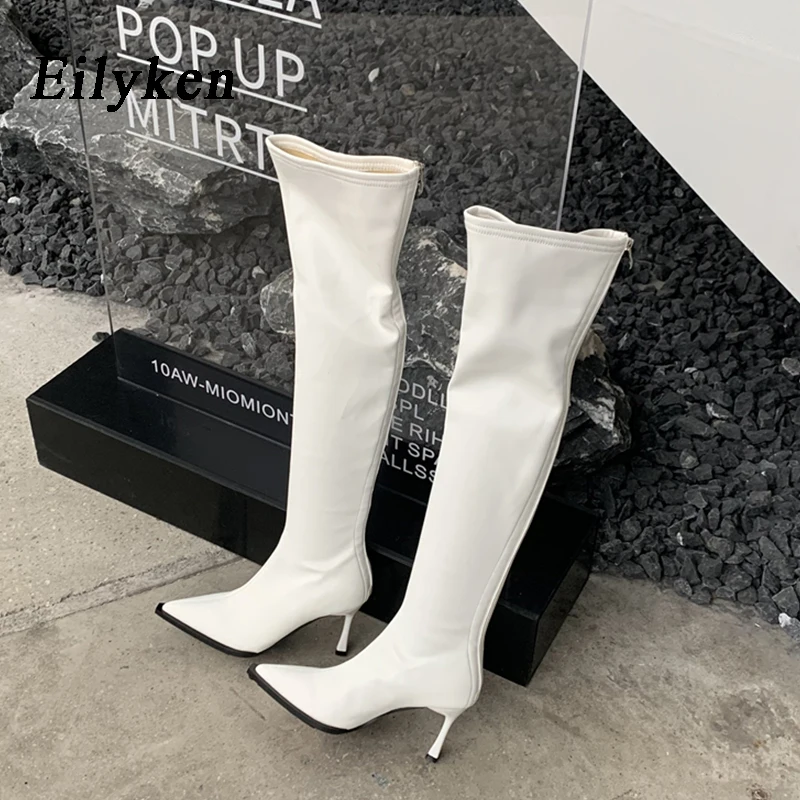 Eilyken White Over The Knee Boots Women’s Fashion Pointed Toe Zip Stiletto Thin Heels Long Thigh High Shoes Zapatos Mujer