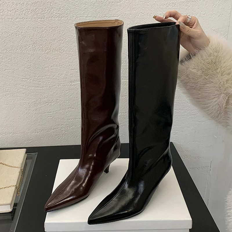Eilyken Winter New Fashion Knee-High Boots Women Pointed Toe Elegant Thin Low Heel Casual Ladies Pumps Shoes Long Botas Mujer