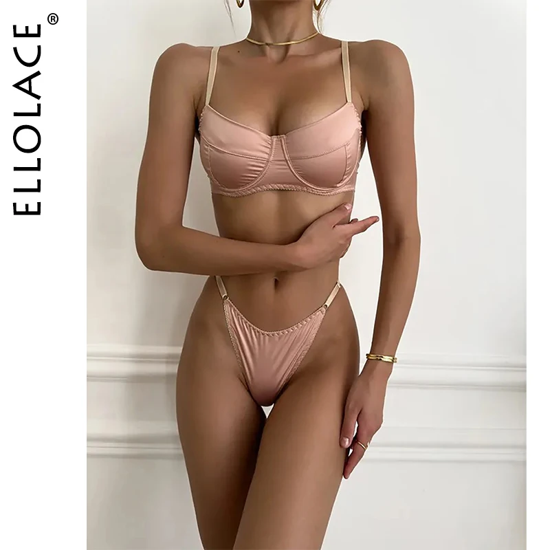 Ellolace Elegant Satin Lingeries Sexy Hot Erotic Women’s Ethical Underwear Sissy Slip Bra Hilitos Ladies Outfit Call Of TheNight