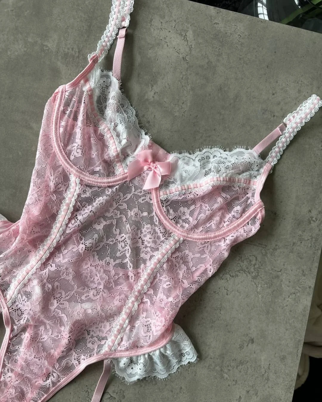 Ellolace Fancy Lingerie Bodysuit Lace Patchwork Tops See Through Sissy Adult Clothes Sexy Body Stocking Crotchless Teddy
