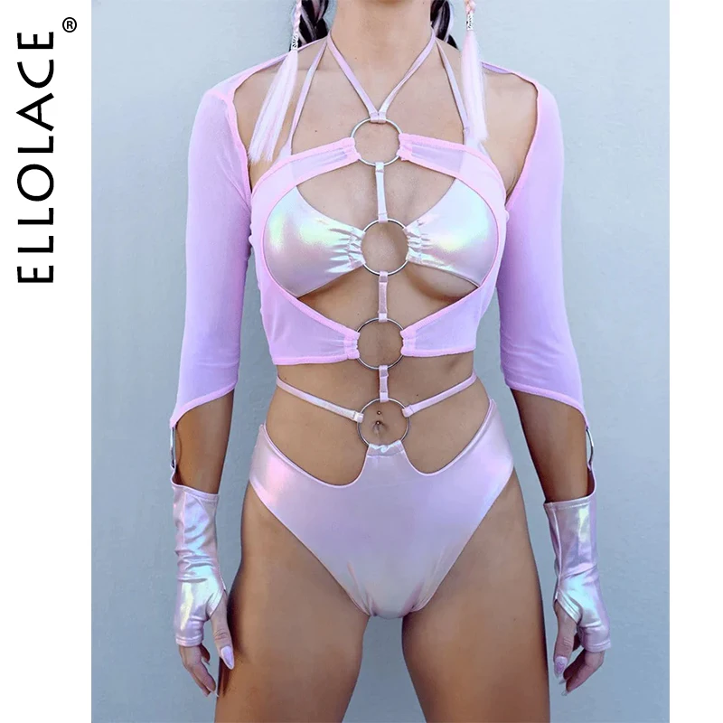 Ellolace Music Festival Body Clothes Woman Sexy Cut Out Bodysuit With Crop Top Rave Oufit Hot Club Costume Women Tops Aesthetic