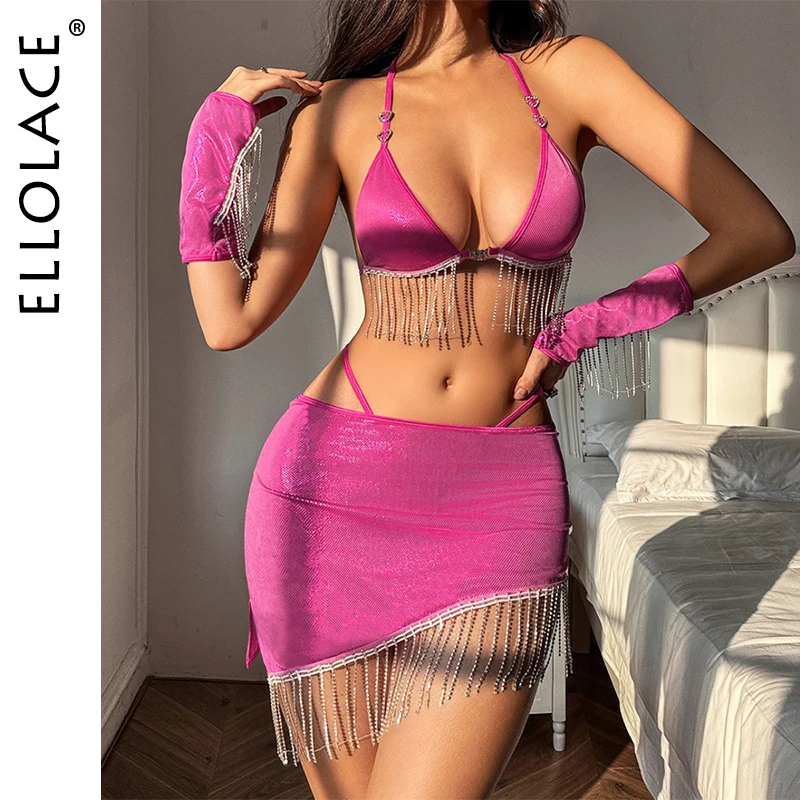 Ellolace Sexy Women’s Swimsuit Tassels Mini Skirt Tie Bra 5PC Set Young Girls’ Bikini Beachwear