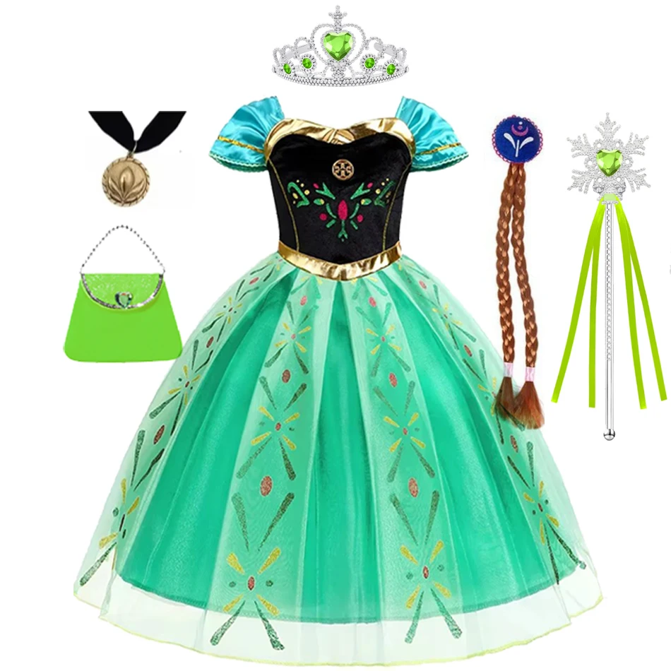Anna Costumes for Girls Kids Summer Clothes Halloween Birthday Carnival Robe Party Disguise Princes...