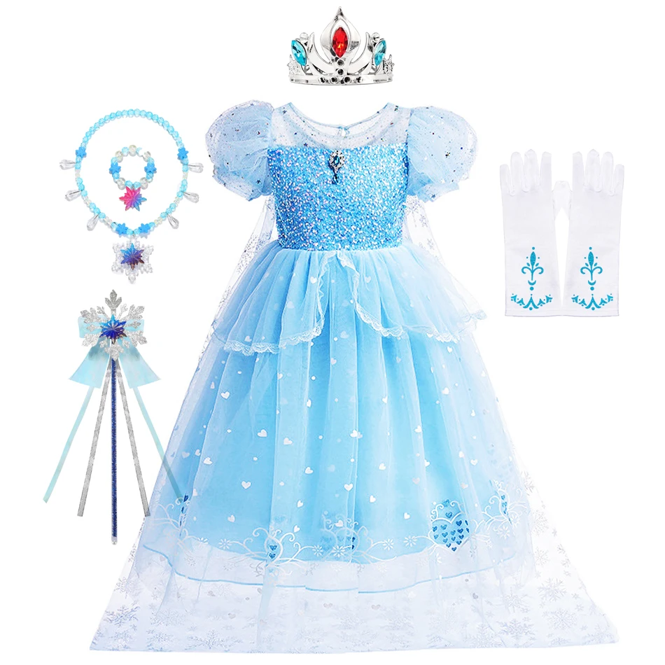 Elsa Dress for Girl Fancy Christmas Dress Girls Princess Halloween Anna Costume 4 5 6 7 8 9 10 Years