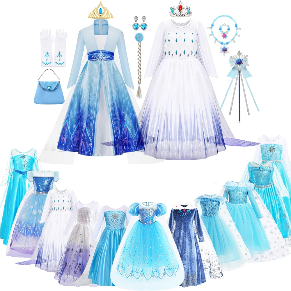 Girl Elsa Anna Cosplay Clothing Princess Aurora Belle Party 2-10T Girls Dress Carnival Halloween Ja...