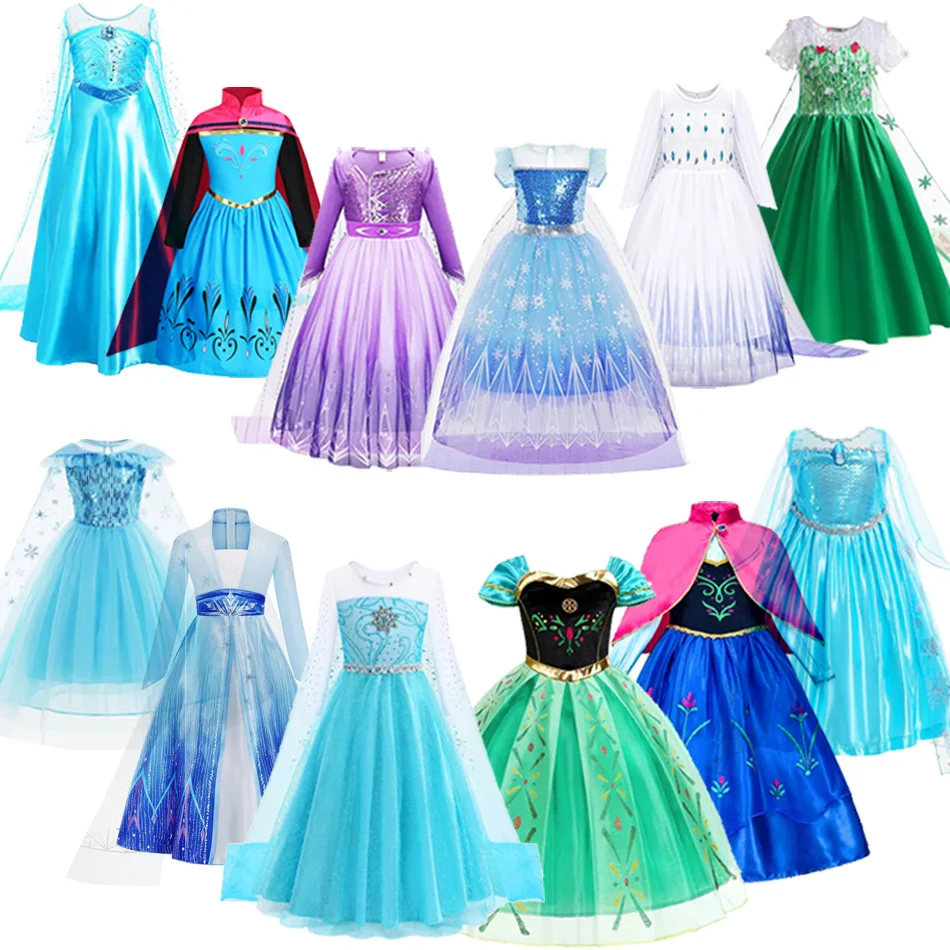 Girl Elsa Anna Cosplay Clothing Princess Aurora Belle Party 2-10T Girls Dress Carnival Halloween Ja...