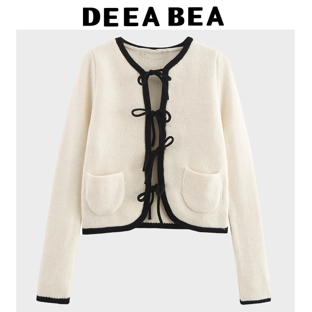 Fashionable Tie Fixed Long Sleeved V-neck Knitted Cardigan Sexy And Versatile Showing Off Temperament Women’s Sweater
