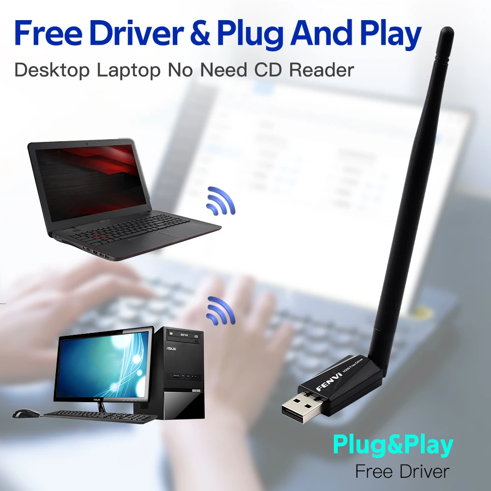 Fenvi 650Mbps USB WiFi Adapter Wireless Network Card 2.4G&5GHz Dual Band 802.11ac USB Dongle Antenna For Win 10/11