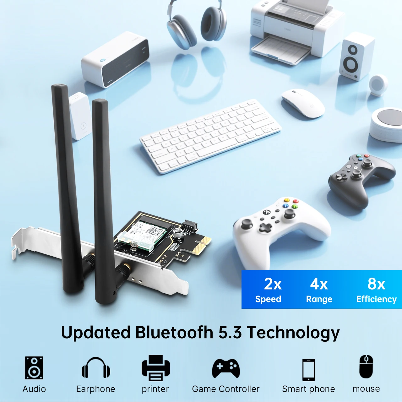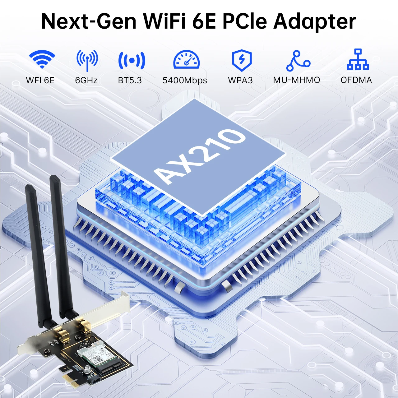 fenvi AX210 WiFi 6E PCI-E Wireless Adapter Bluetooth 5.3 Dual Band 2.4G/5GHz 5374Mbps Wifi6 Network Card Desktop PC Win 10/11