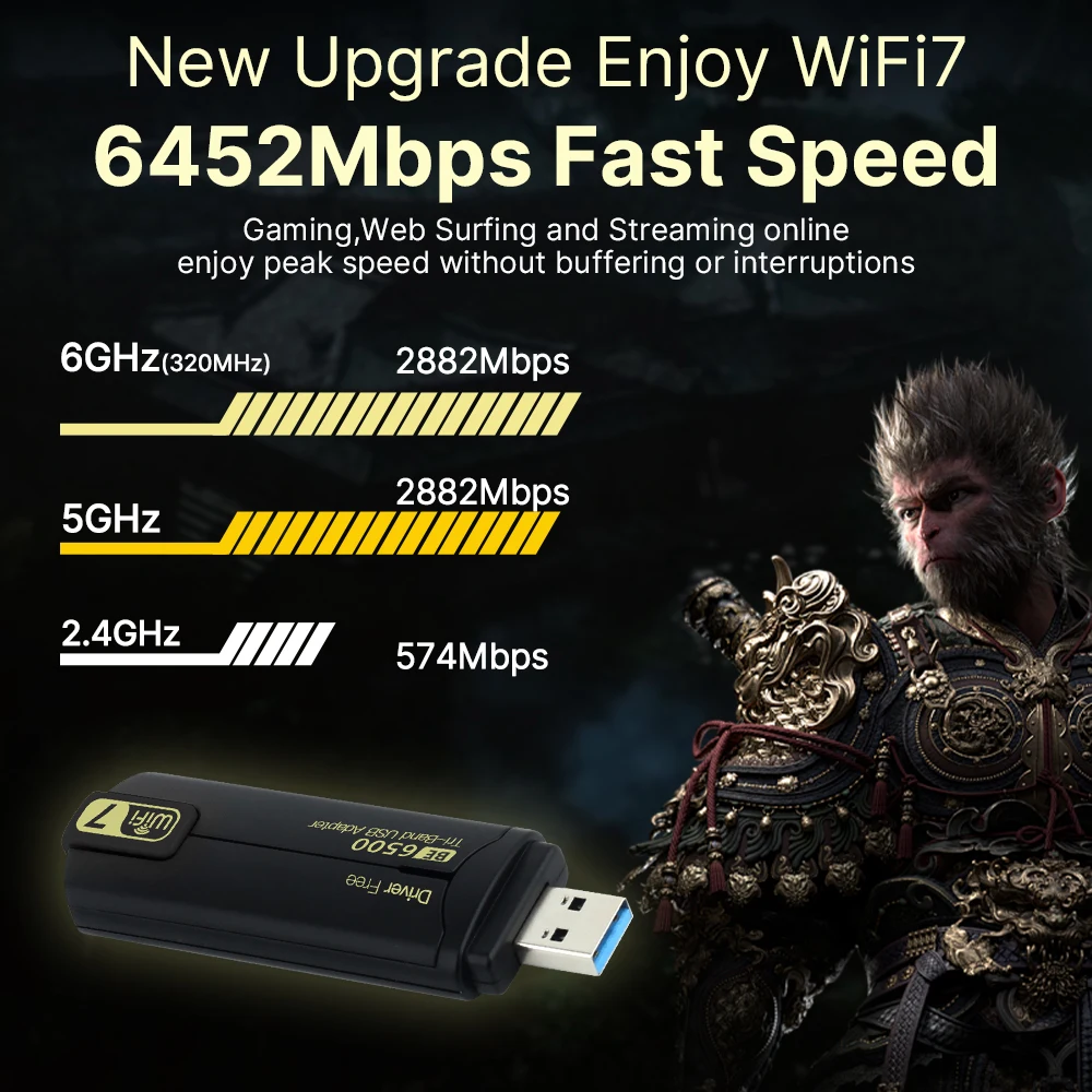 fenvi WiFi 7 USB 3.0 Adapter BE6500 Network Card Tri Band 6G/5G/2.4G USB Dongle Wireless Wireless Receiver Free Driver Win 10 11